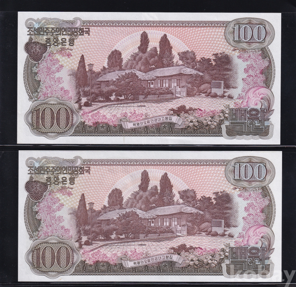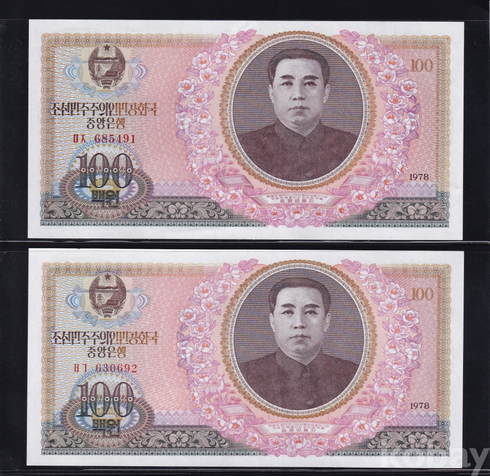 - 윗동네 1978년 백원 통용권 2연번 미사용 지폐 - 2장 일괄