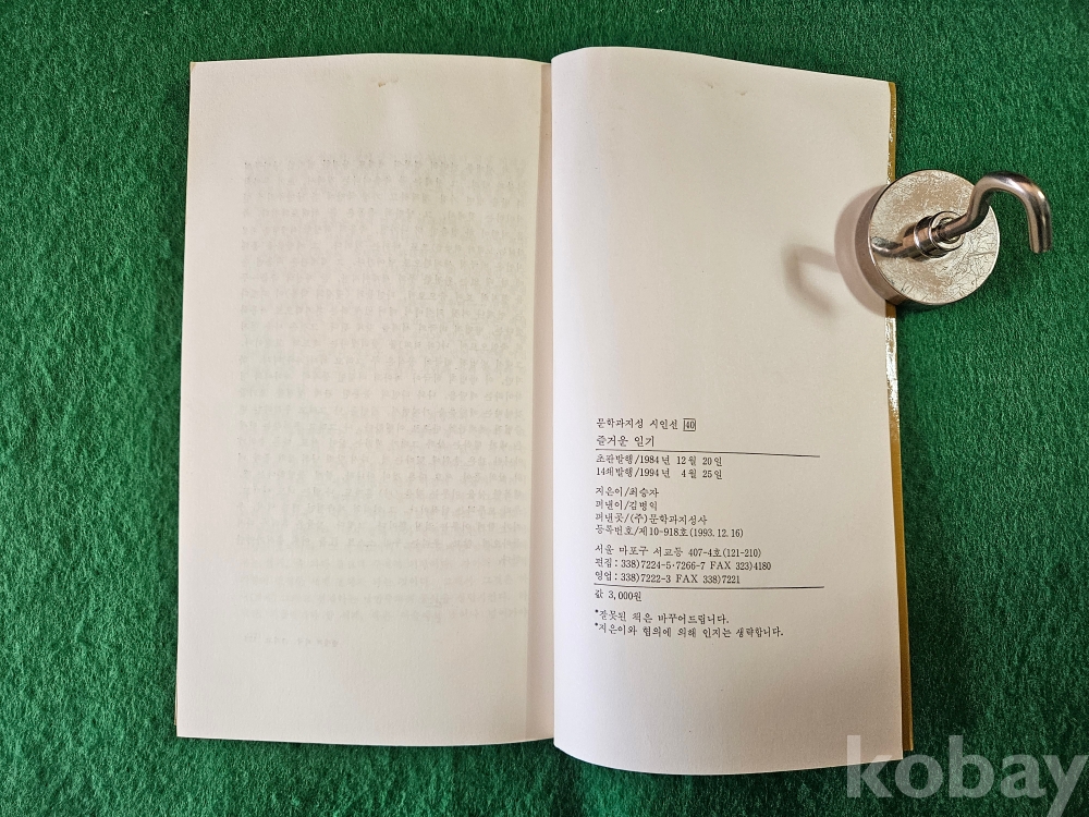 1] 품명 : 최승자 詩集 " 즐거운 日記 " - 문학괴지성 시인선 40