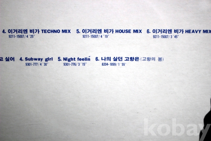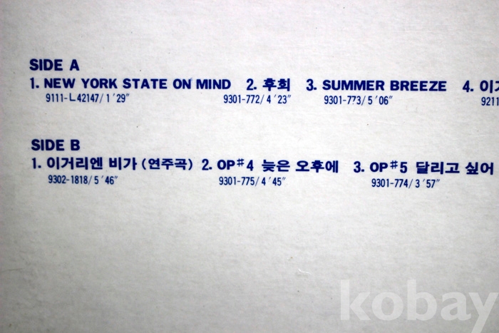 수록 곡 목은 사진을 참조하시기 바랍니다