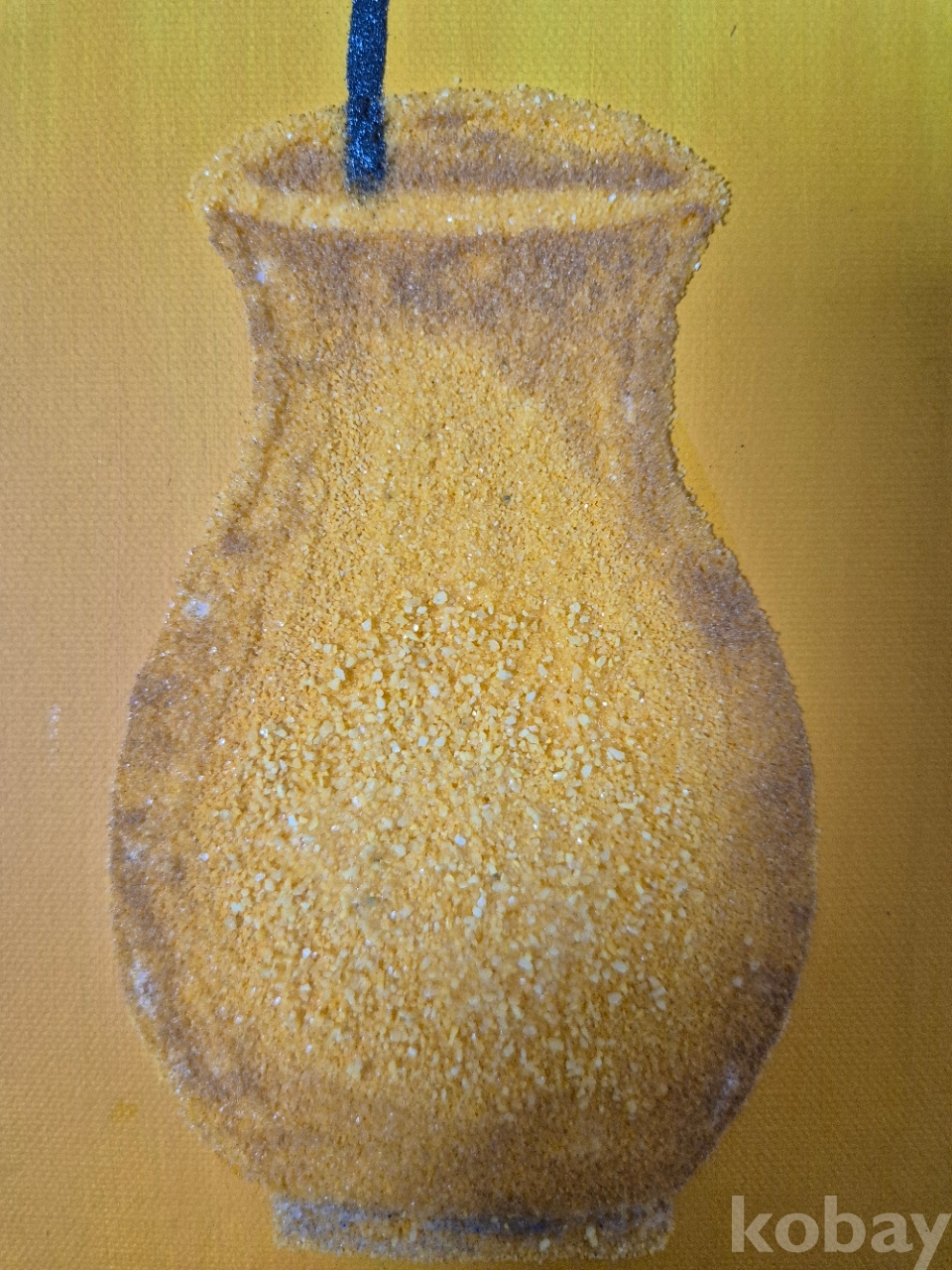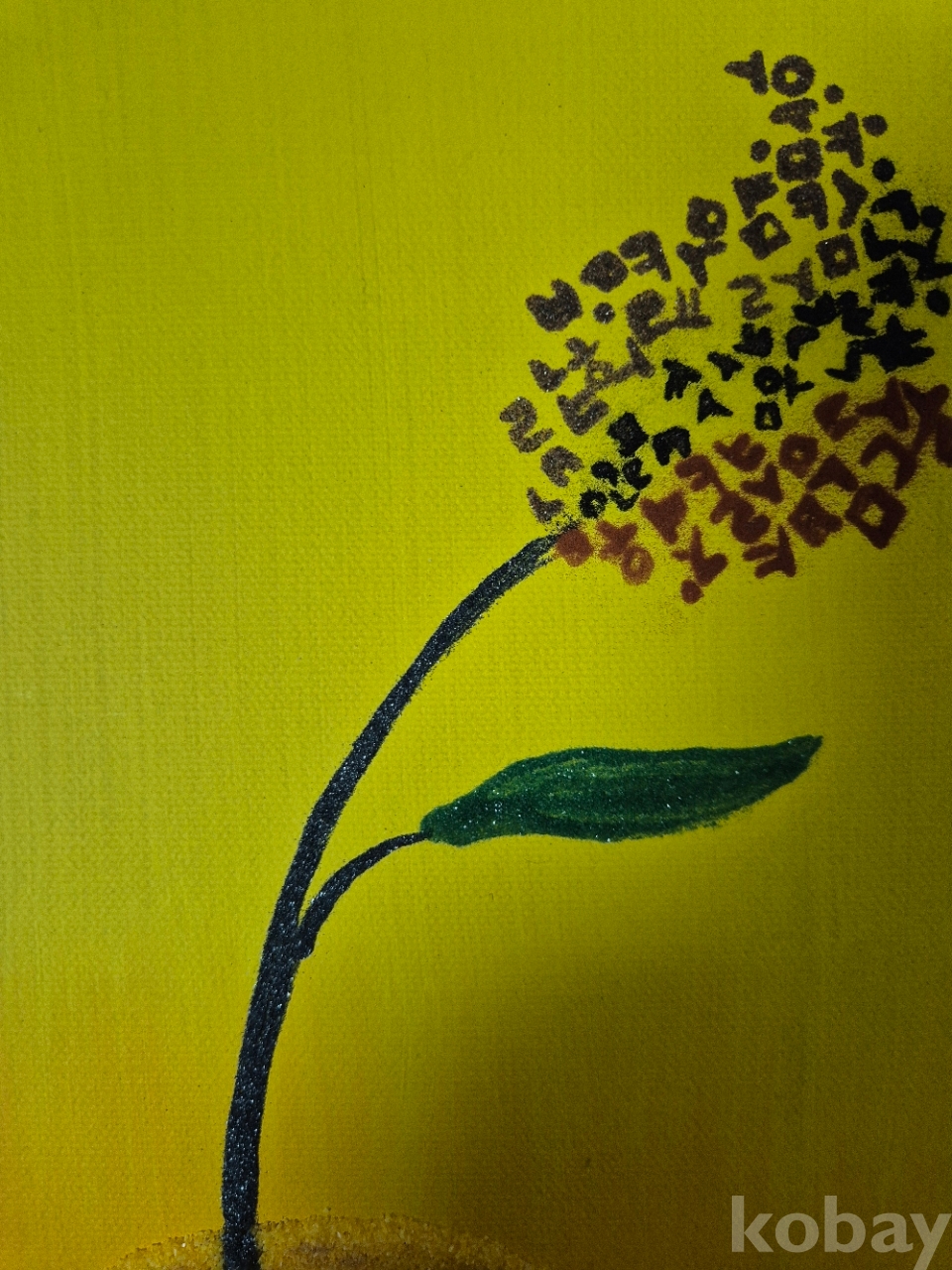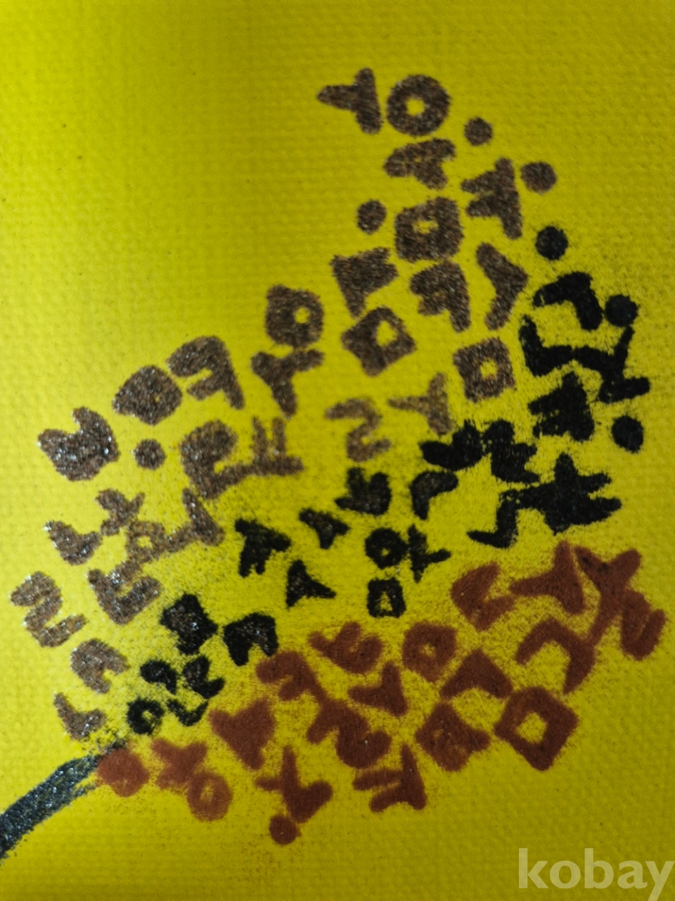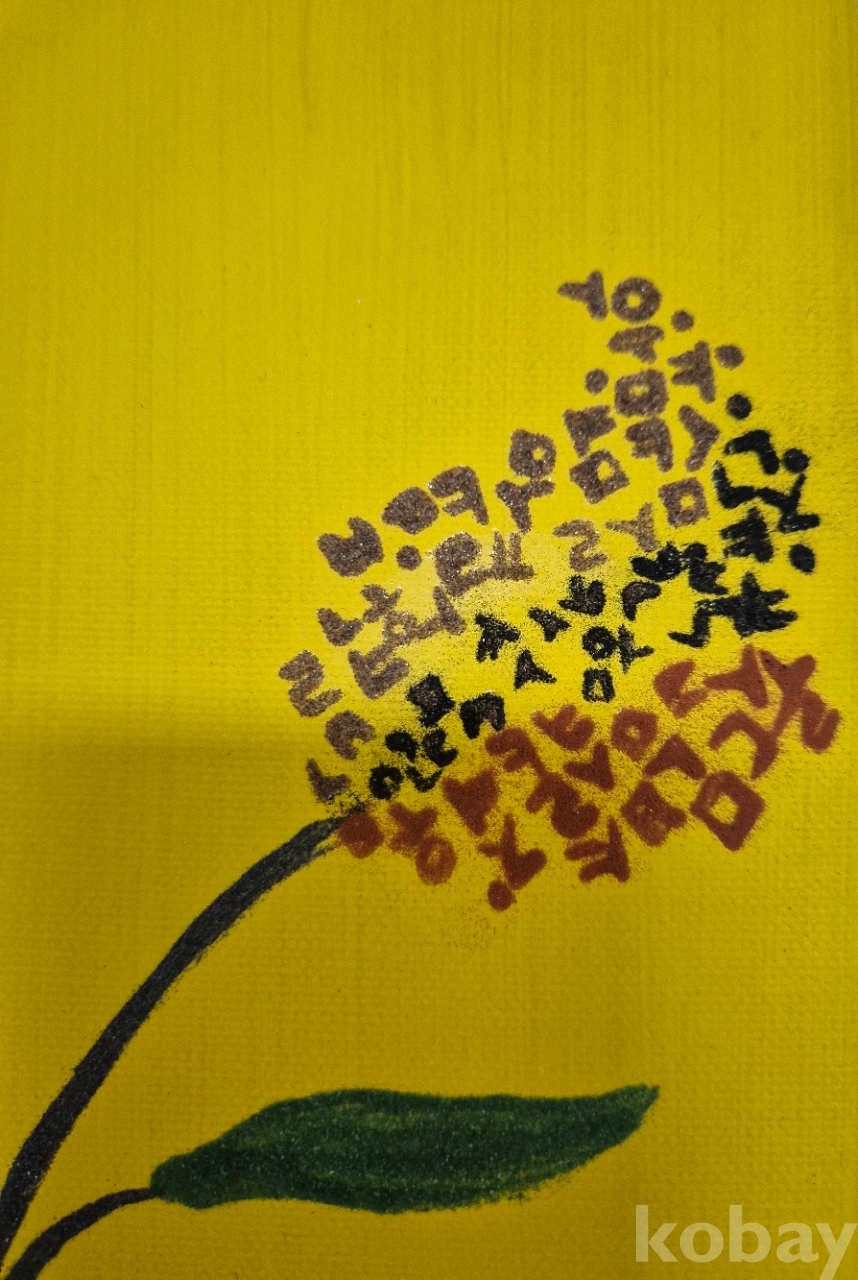 꽃잎에 있는 한글은 돌가루를 뿌려서 표현하다보니