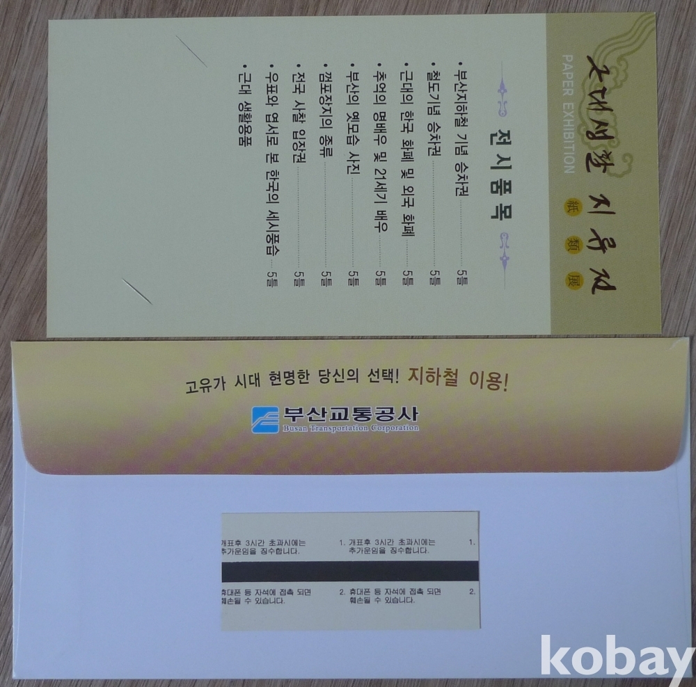 2006년 부산시 근대 유물 지의류전 기념 지하철 승차권
