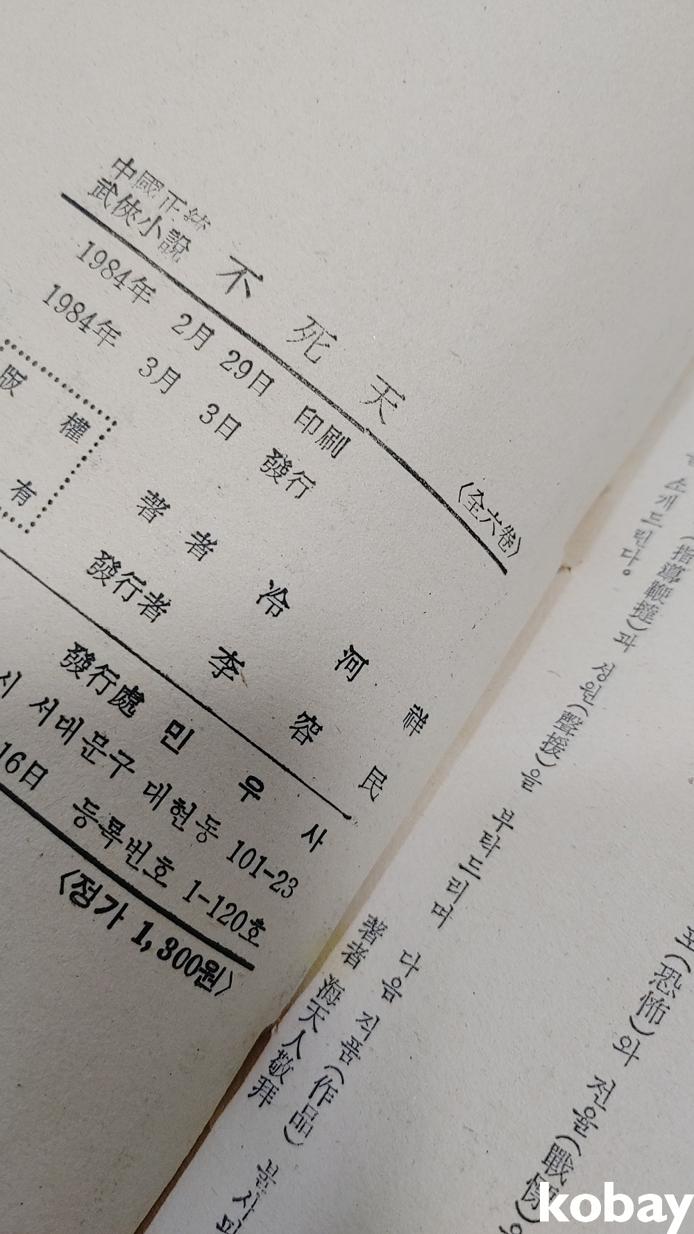 1984년 불사천 무협지 입니다