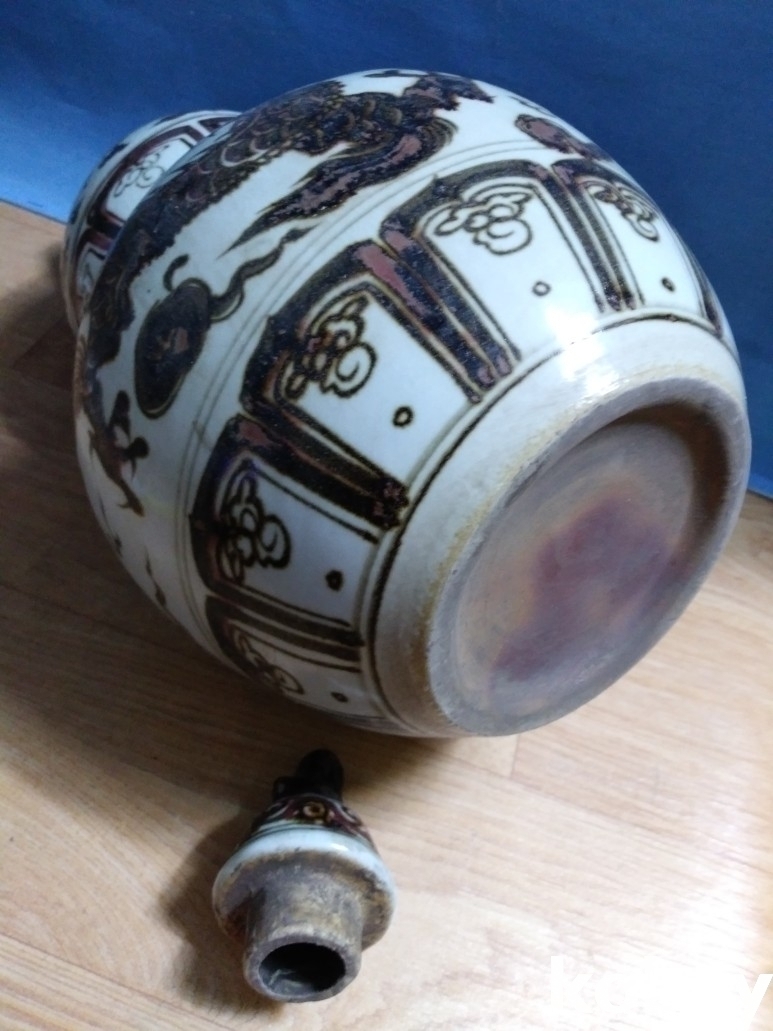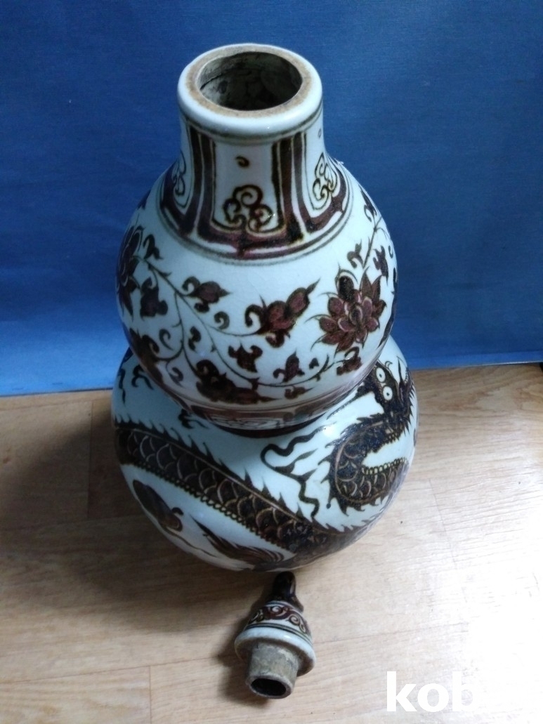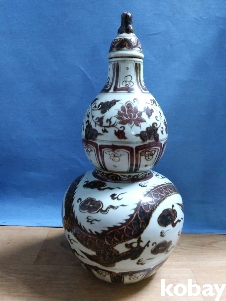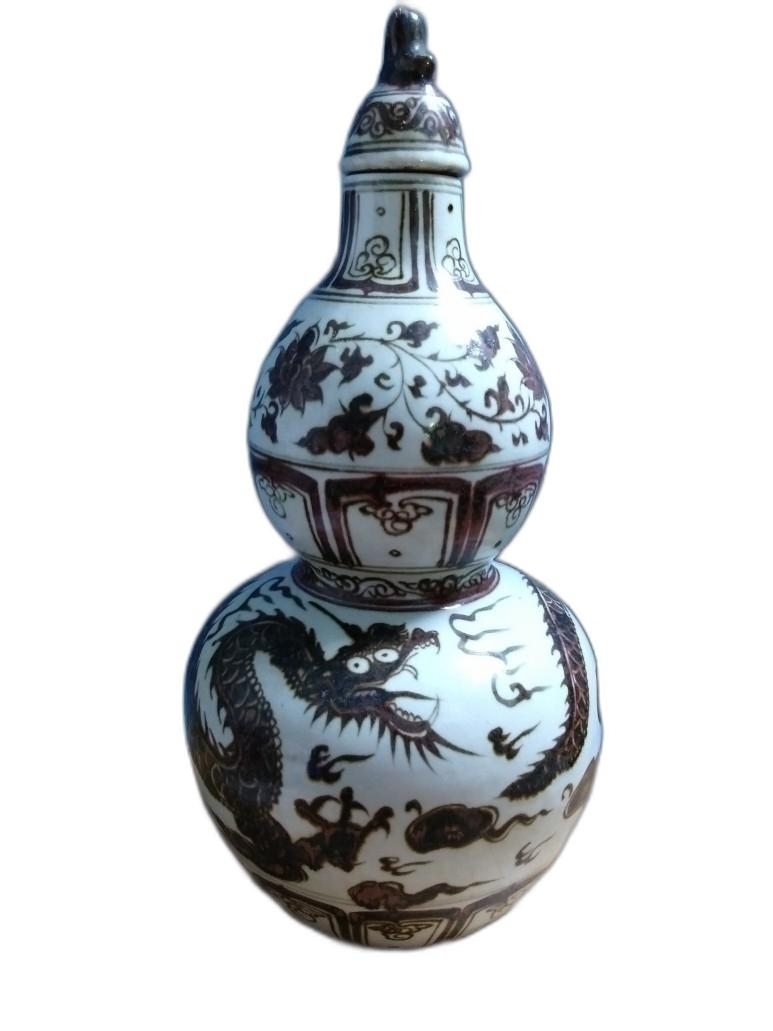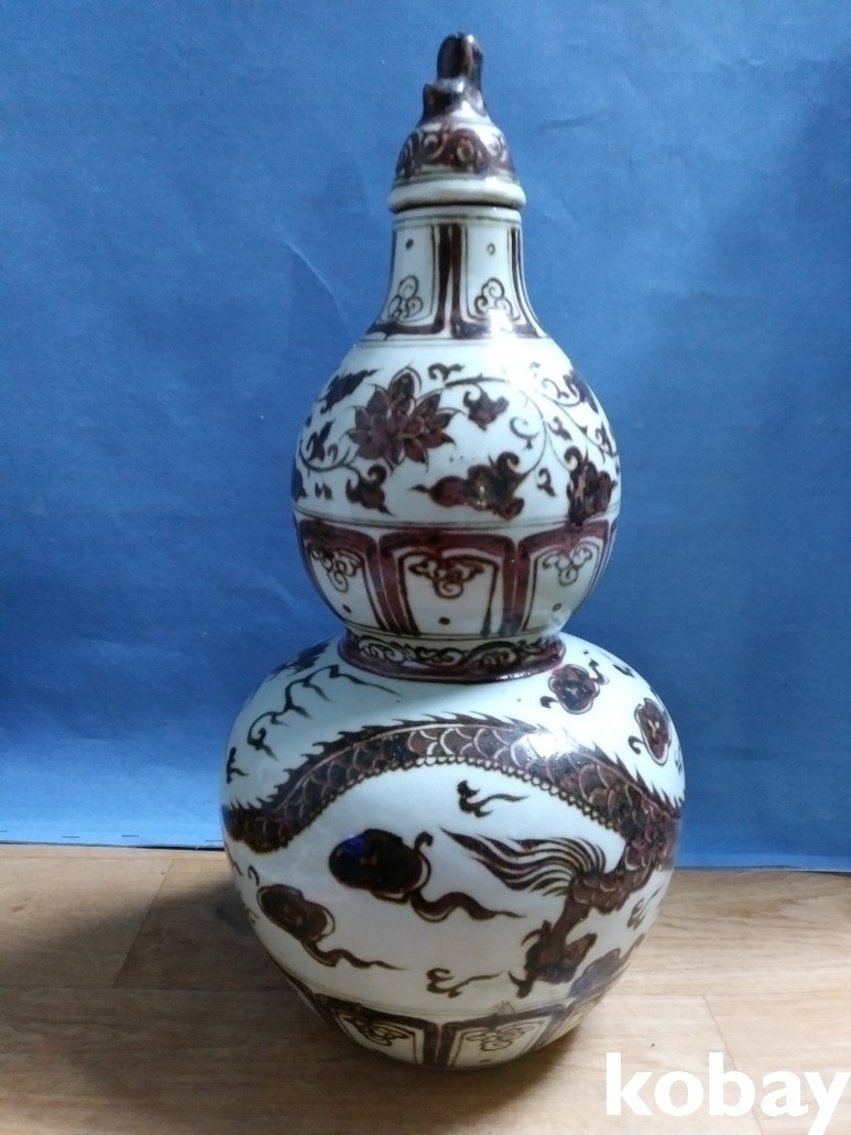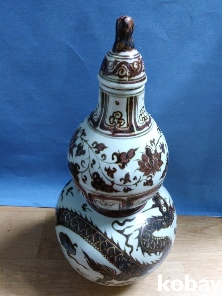 용 문양이 있는 호리병 모양의 도자기 입니다.