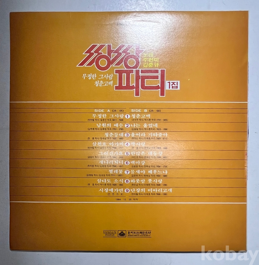 | 자켓상태 | EX : 약간의 마모, 모서리 찢김 존재 | 음반상태 | VG : 생활 기스 다수, 가벼운 노이즈 존재 | 발매정보 | 알수없음 | 가사지여부 | 무 |