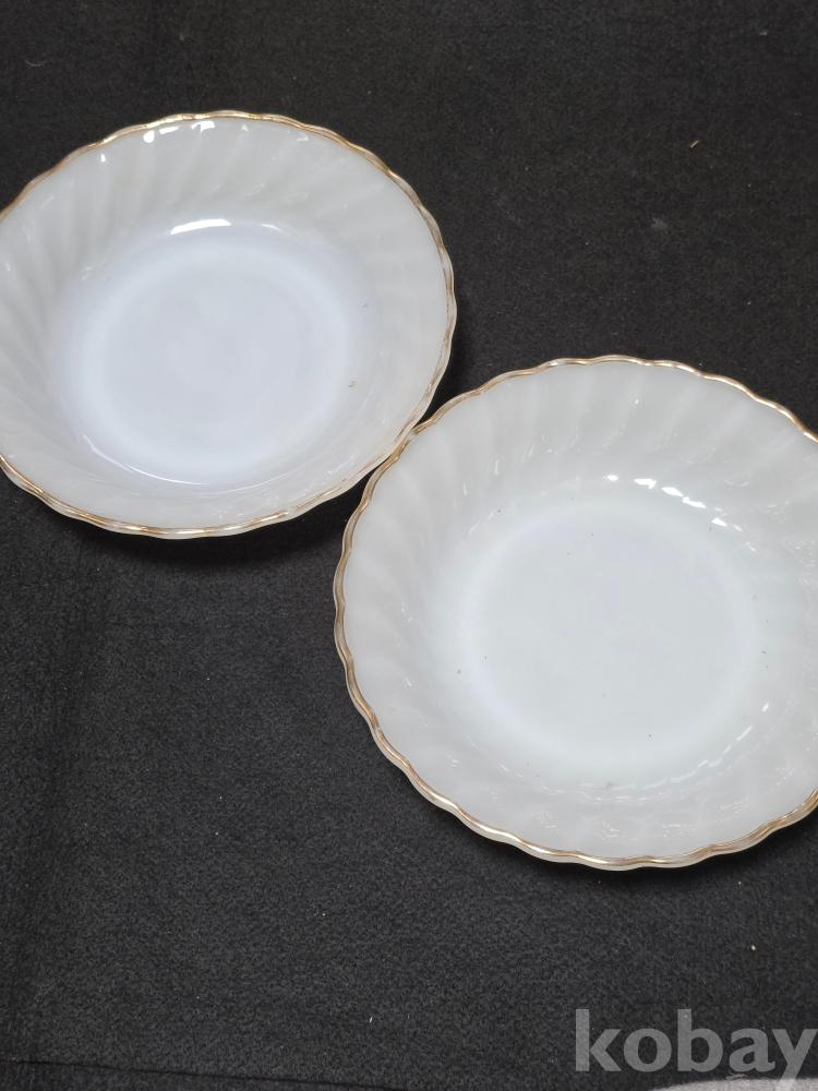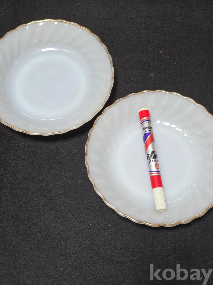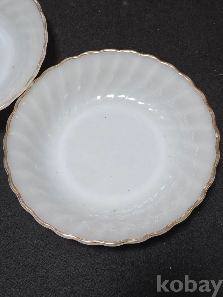 (((빈티지접시/밀크그릇))) 오래전 미국 앵커호킹 (ANCHOR HOCKING) 빈티지 밀크 빗살무늬 접시2개