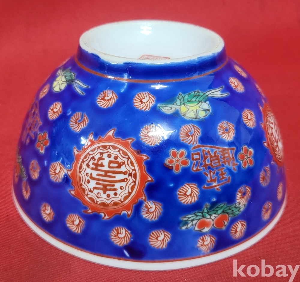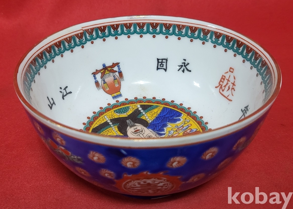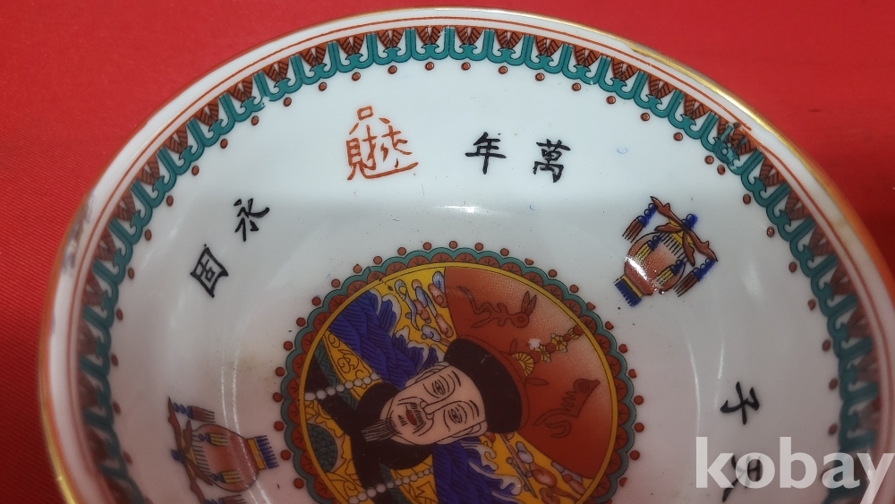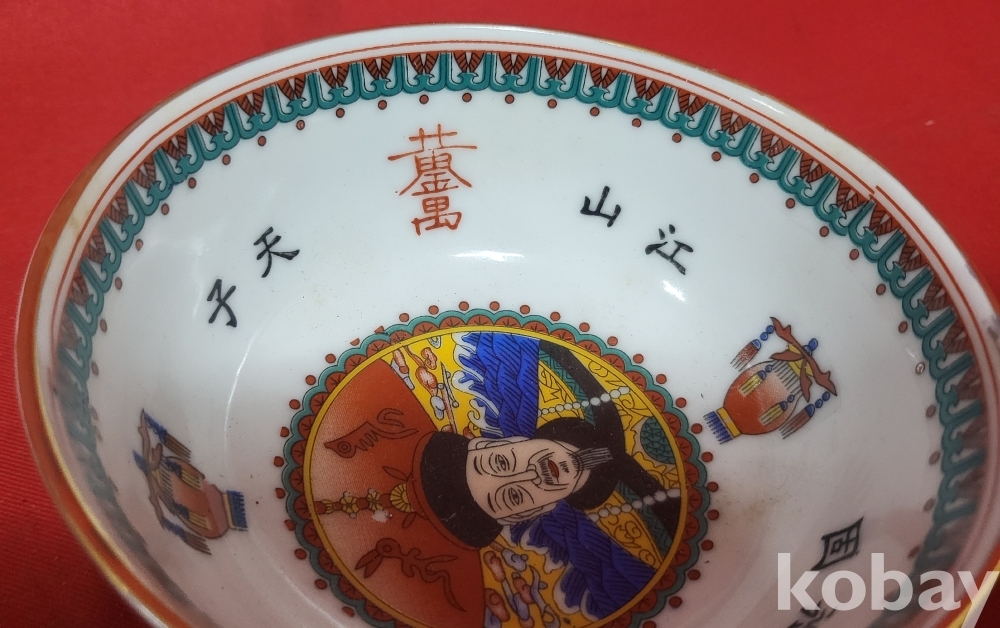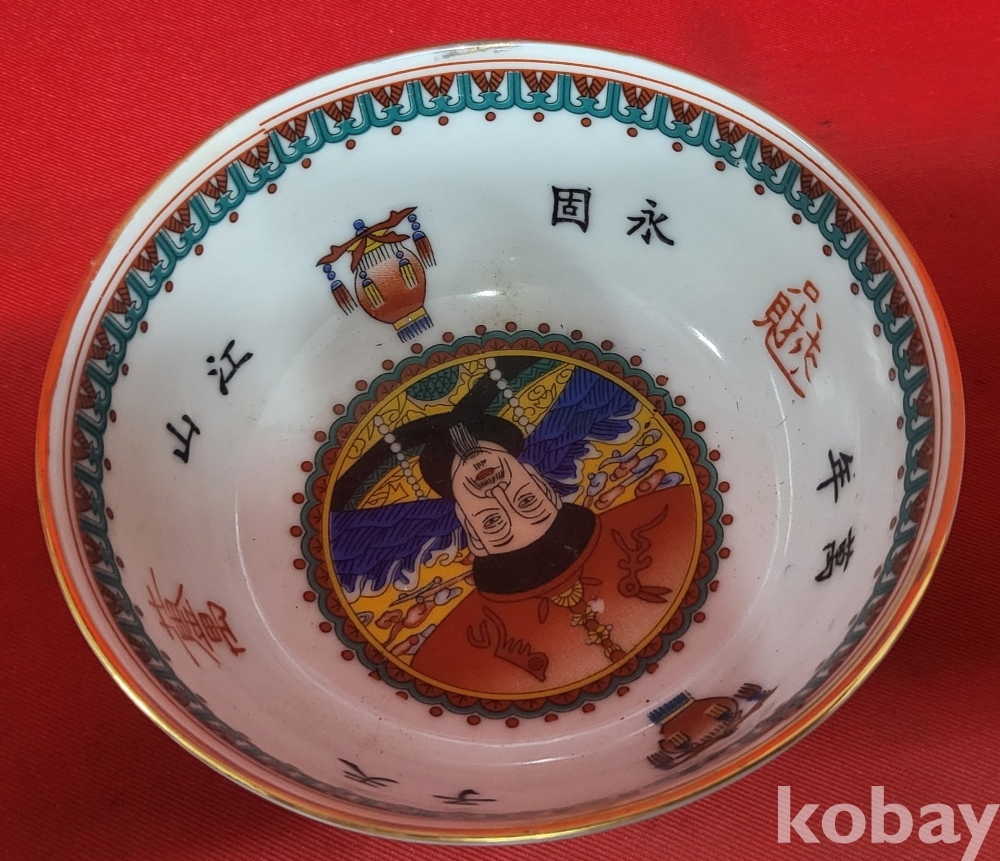 건륭어제(乾隆御帝) 관지 보이는 황제(皇帝) 와 문자(文字)문양 분채 미사용 다완(茶碗) 입니다,