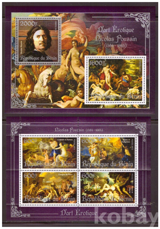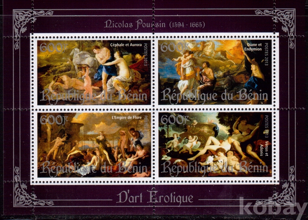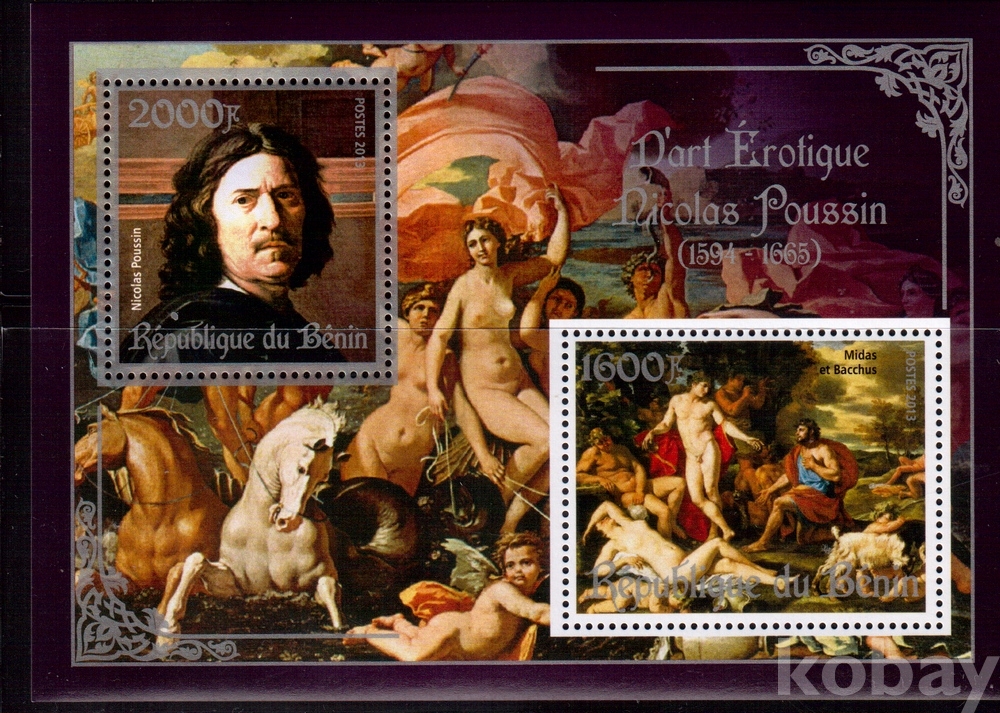 (누드명화) 베냉 2013 니콜라 푸생 누드화 2 s/s(silver) MNH