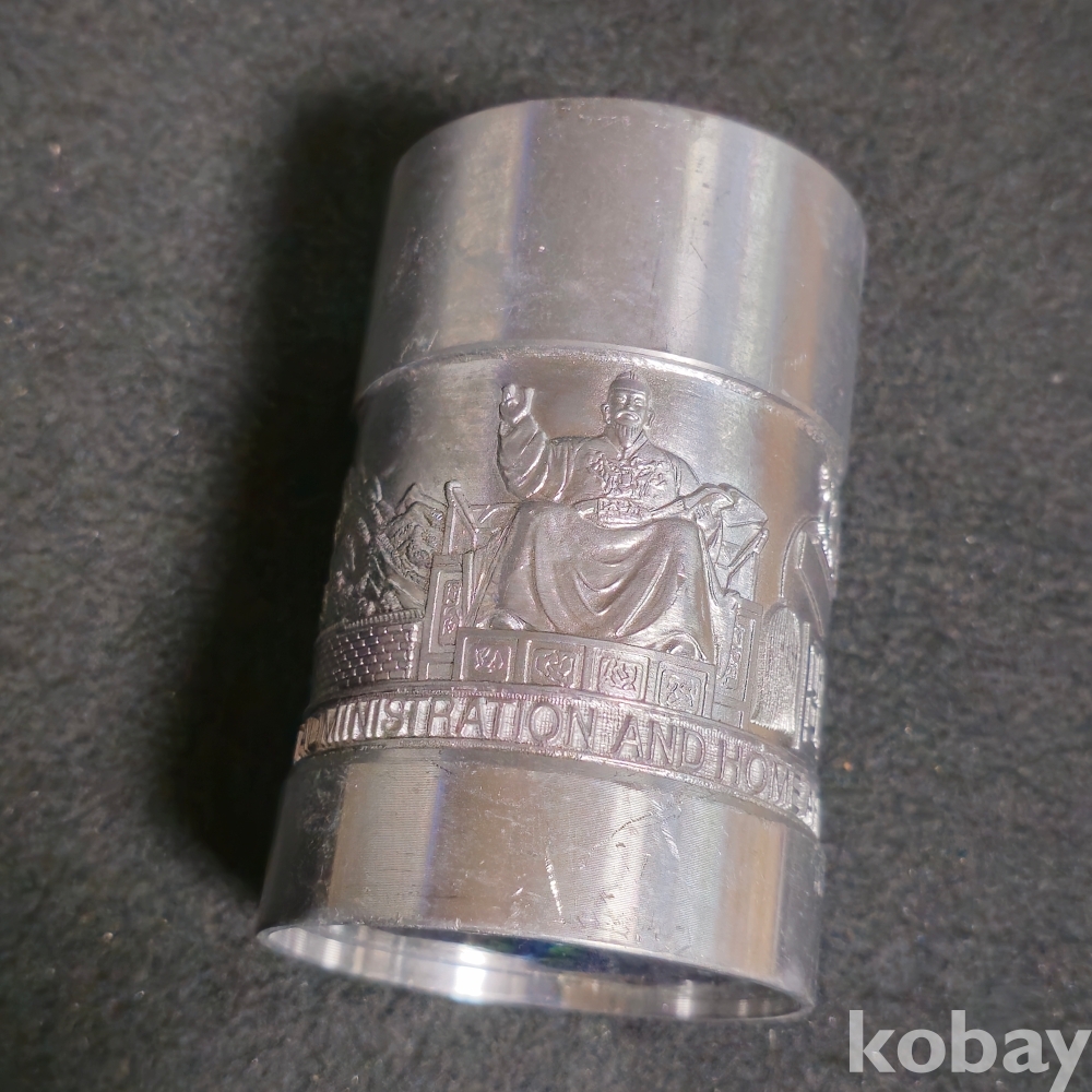 (((근현대사자료))) 오래전 행정자치부장관 鄭宗燮 증 세종대왕동상 양각등 주석 필통