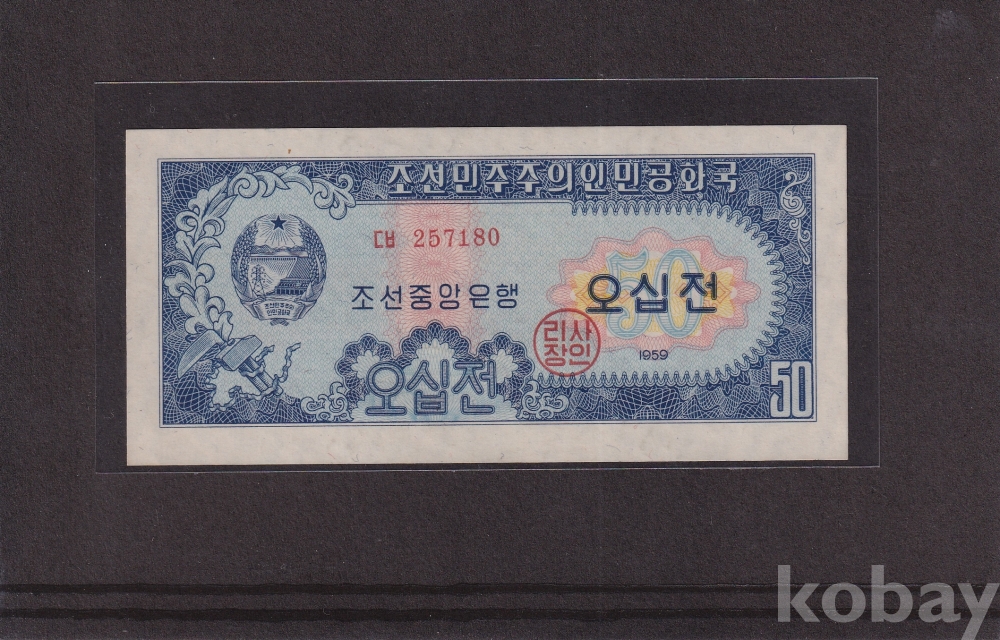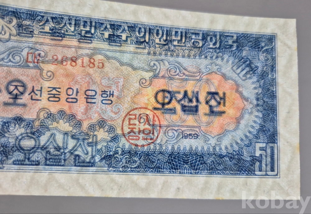 -희귀- 윗동네 1959년 2차 오리지널 지그재그 투문 오십전 미사용 지폐