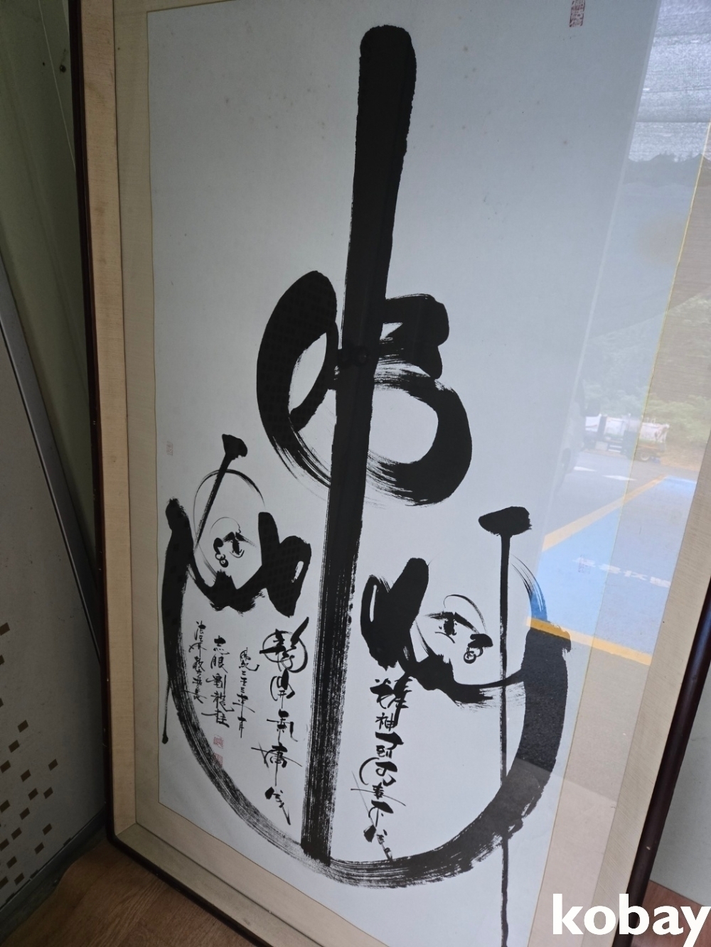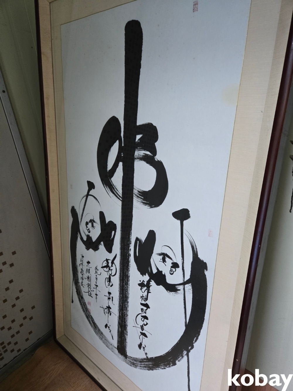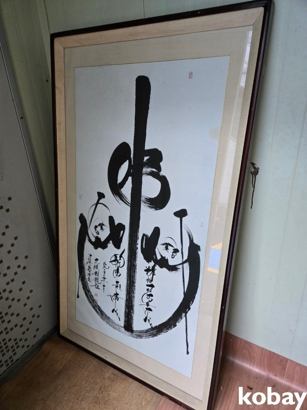 불심 글씨와 달마 그림이 있는 대형 액자 입니다.