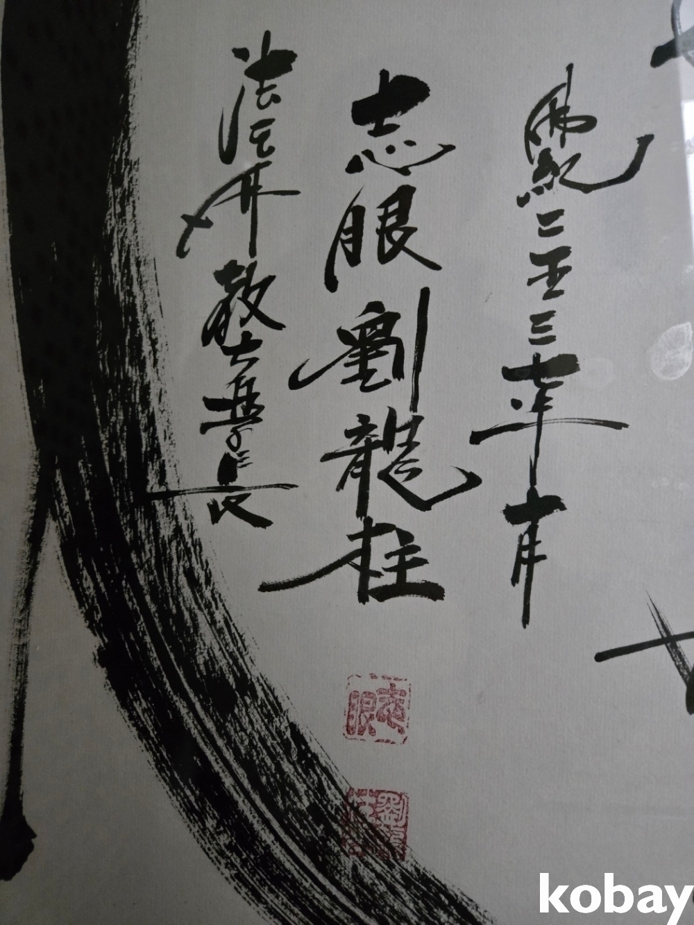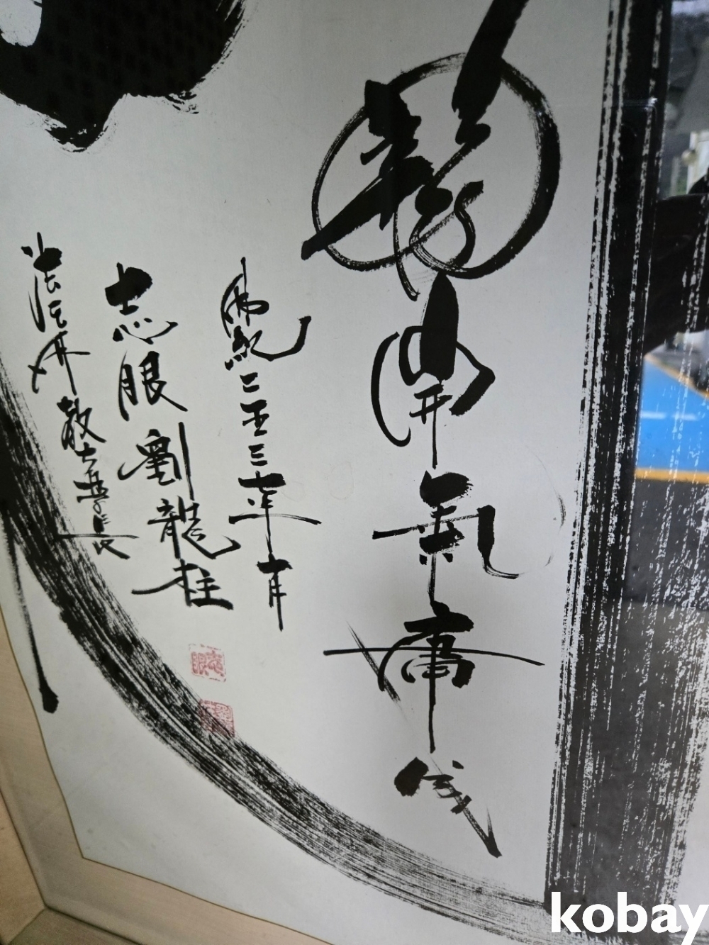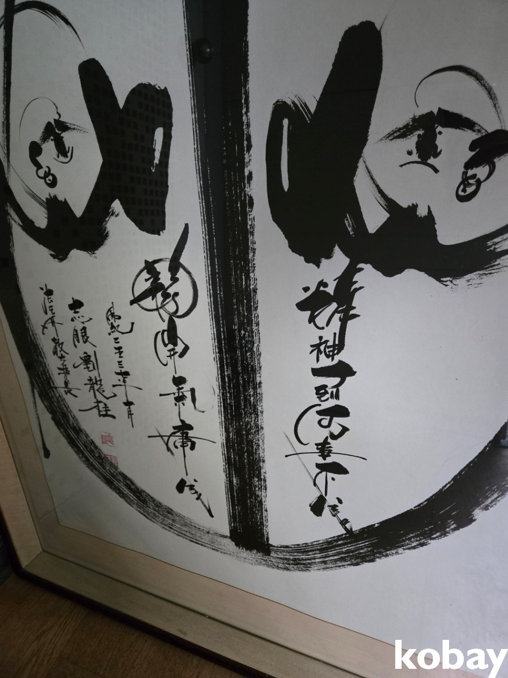 불심 글씨와 달마 그림이 있는 대형 액자 입니다.