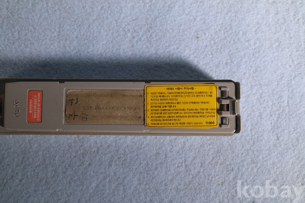 배터리 뒷면에는 한글로 된 '밧데리 사용시 주의사항' 라벨이 붙어 있어 당시 한국 유통 제품임을 확실히 증명합니다.