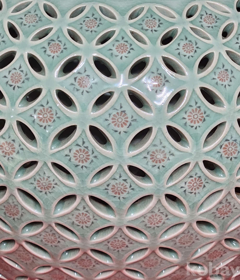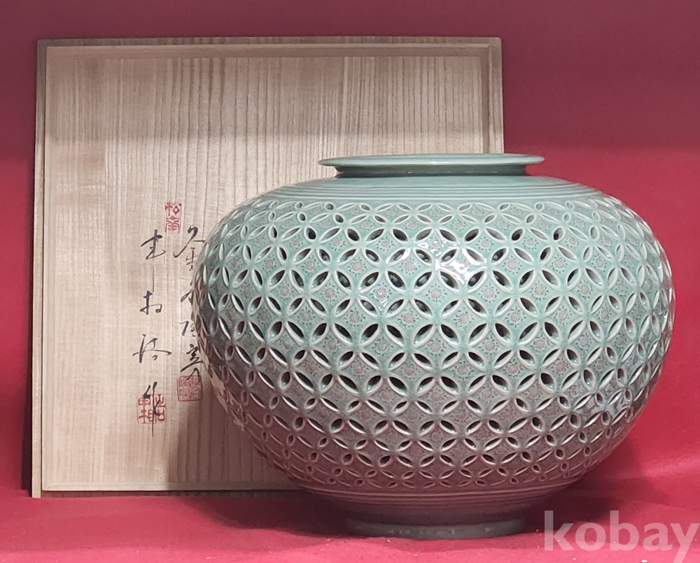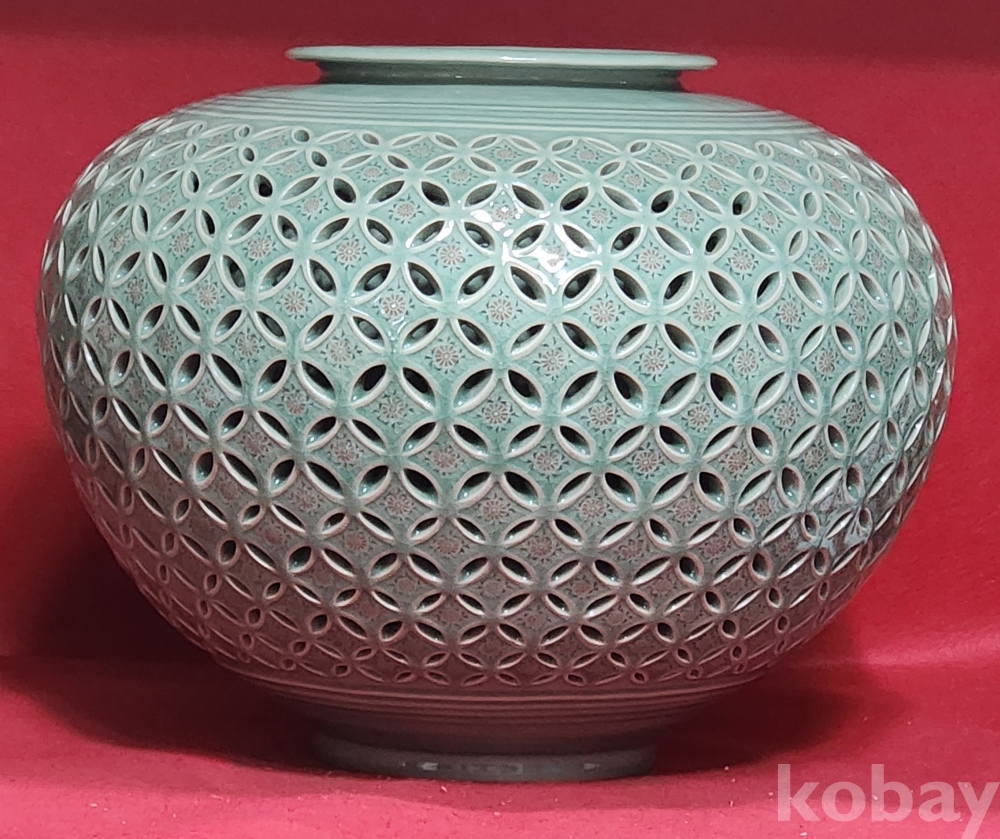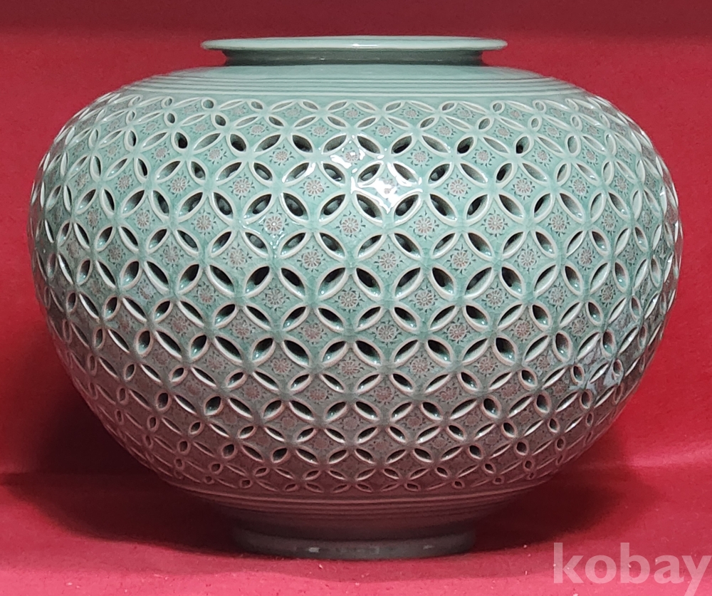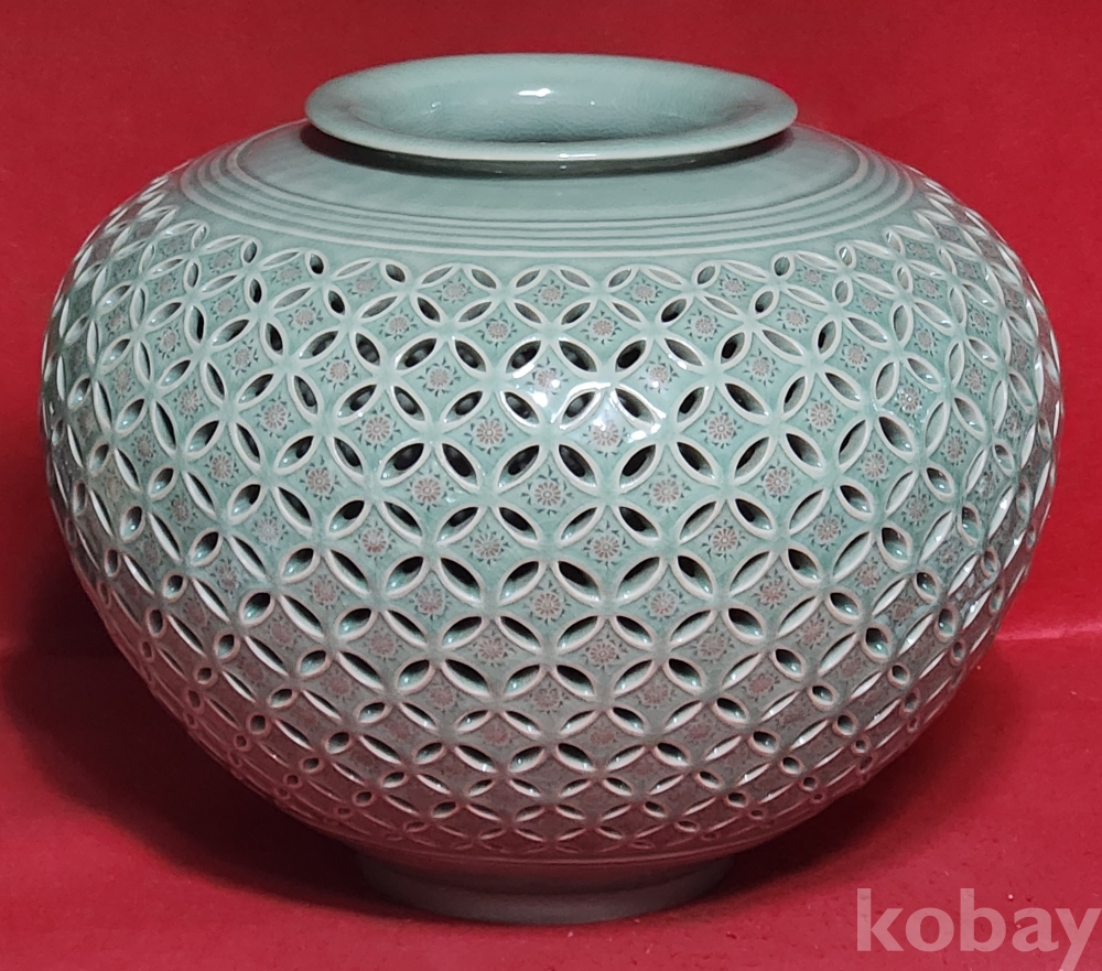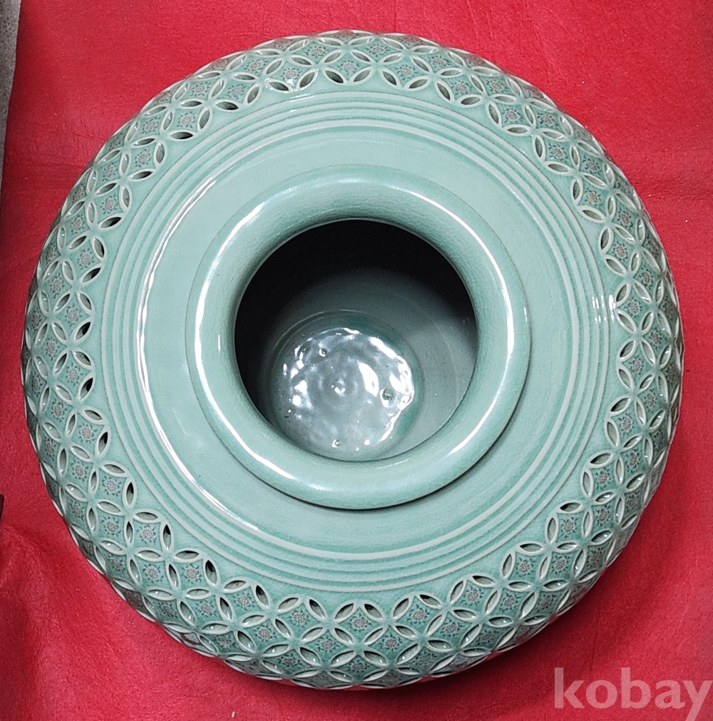 송남 신상호 선생님의 청자상감 진사채 인화문 투각 대 호 입니다