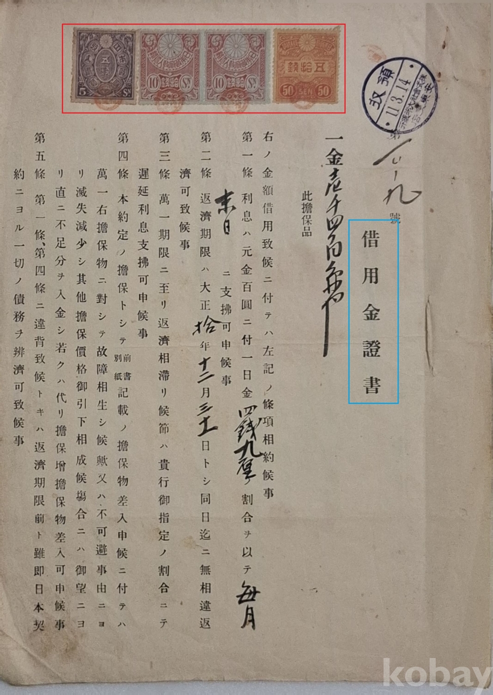 ◈ 차주(借主)와 보증인의 원형 인장을 날인하였다.