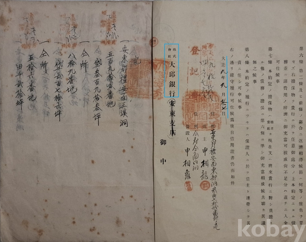 차주(借主) 신상룡(申相龍)과 대구은행 간에 체결한 차용금증서이다.
