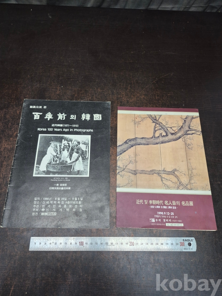 1986년 신세계 백화점 사진으로본 백년전의 한국 사진 전시회 팜플렛1점/ 1998년 우석갤러리근대및 이조시대의 명인들의 명품전 22*30*0.2