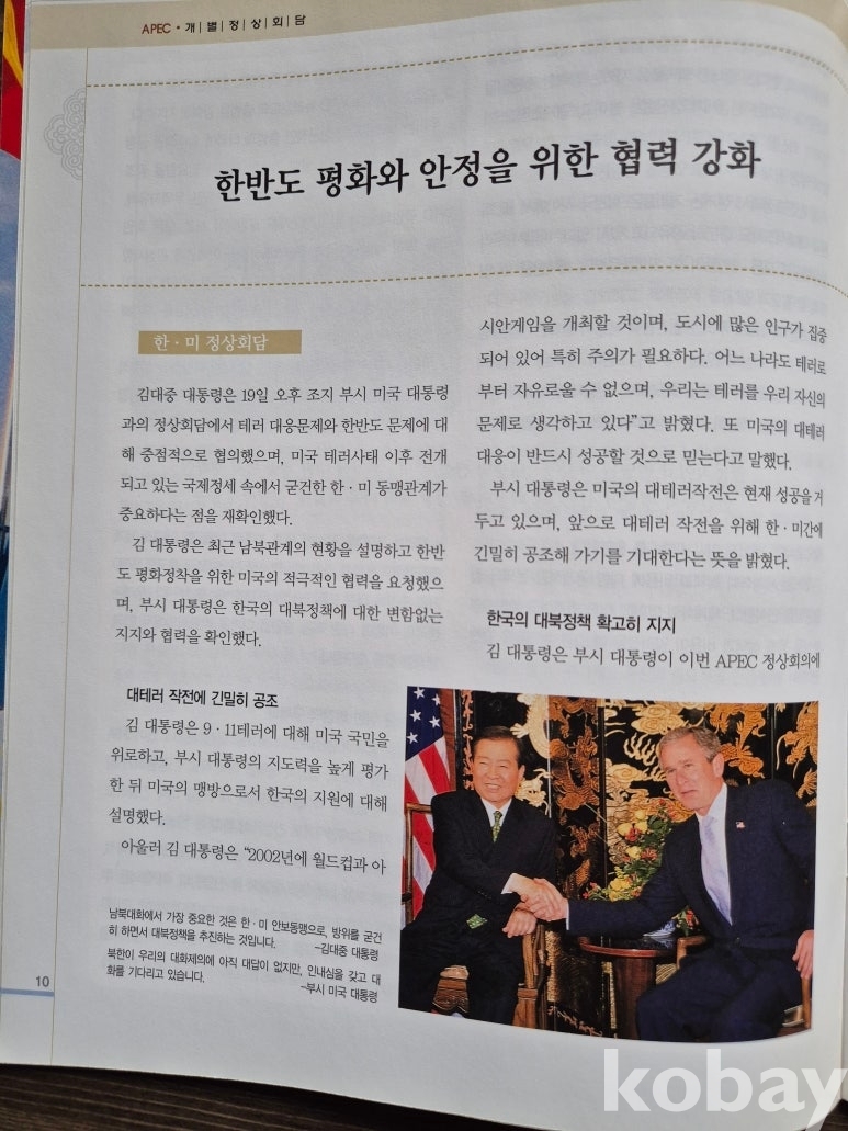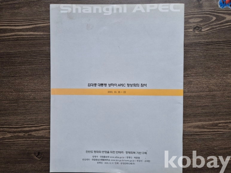 설명: 이 책에는 김대중대통령 상하이 AFEC 아펙 정상회의 참석 - 한반도 평화와 번영을 위한 반테러 경제회복 자료집 입니다.