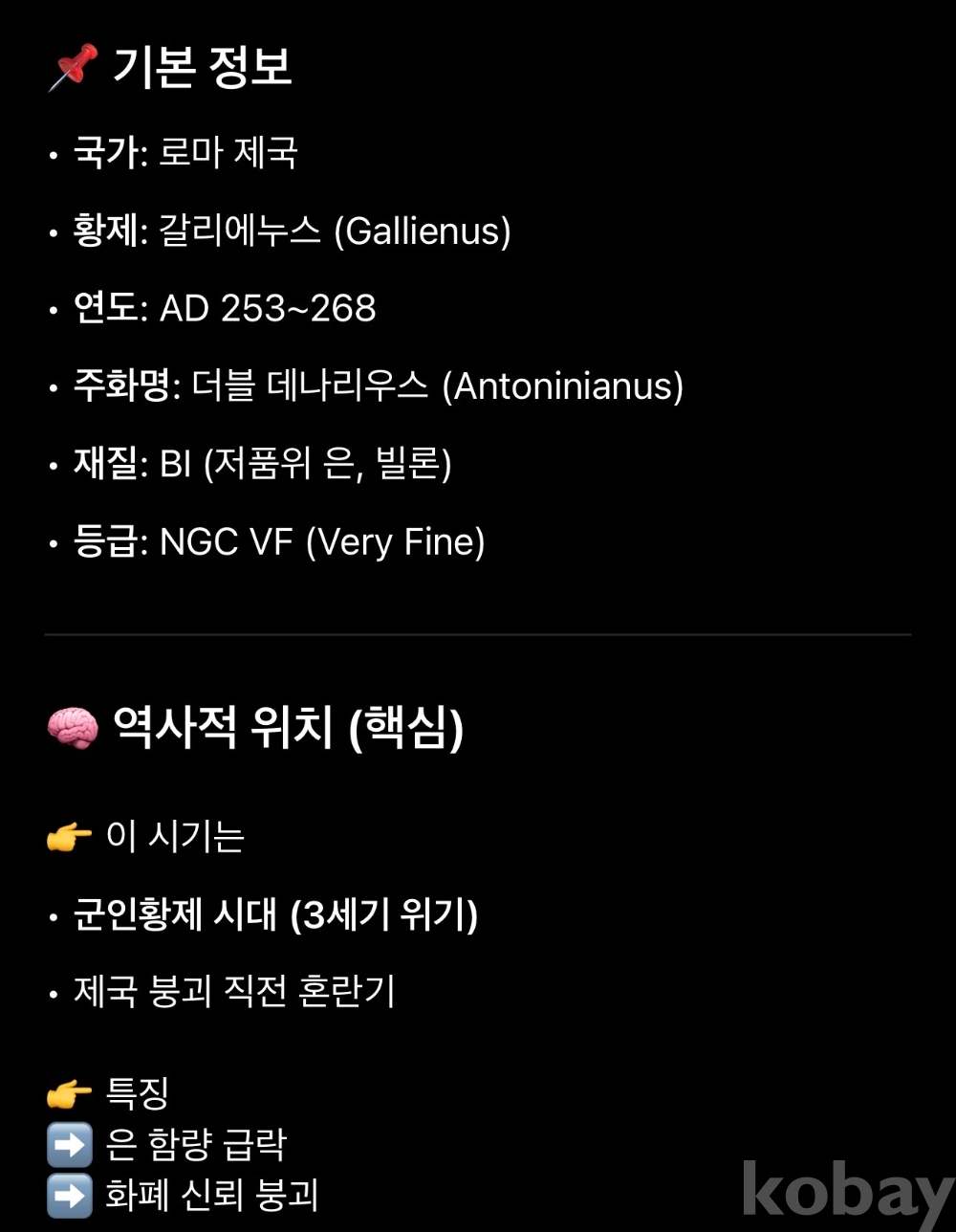[로마 제국 빌론은화] 253-268년 갈리에누스 저함량 은화 NGC VF