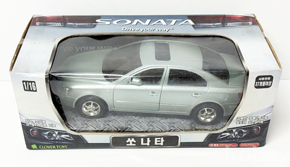 상품설명 | 2011년 크로바월드에서 제조한 1/16 스케일 '쏘나타 미니카' 이다. 실제 현대자동차의 5세대 모델인 NF 쏘나타의 디자인을 정교하게 재현한 모형이다. | ||
