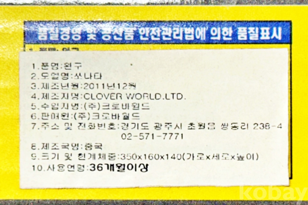 제조사 | (주) 크로바월드 | 상태 | 미개봉, 상세 상태 사진 참고 |