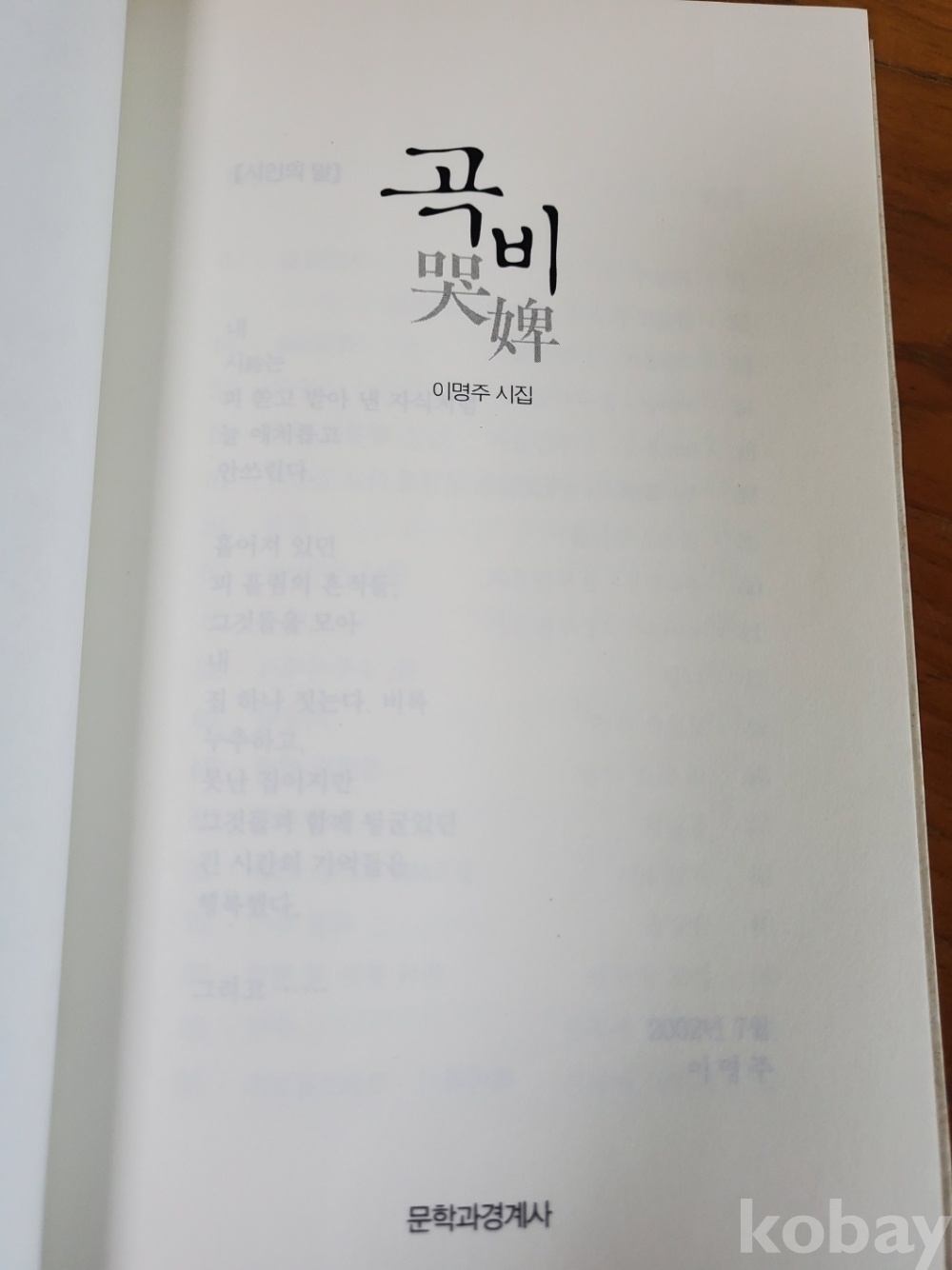 1. 곡비, 이명주, 문학과경계사, 2002년, 123쪽, 저자 서명본, 상태 상, 사진 참조