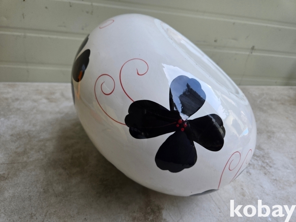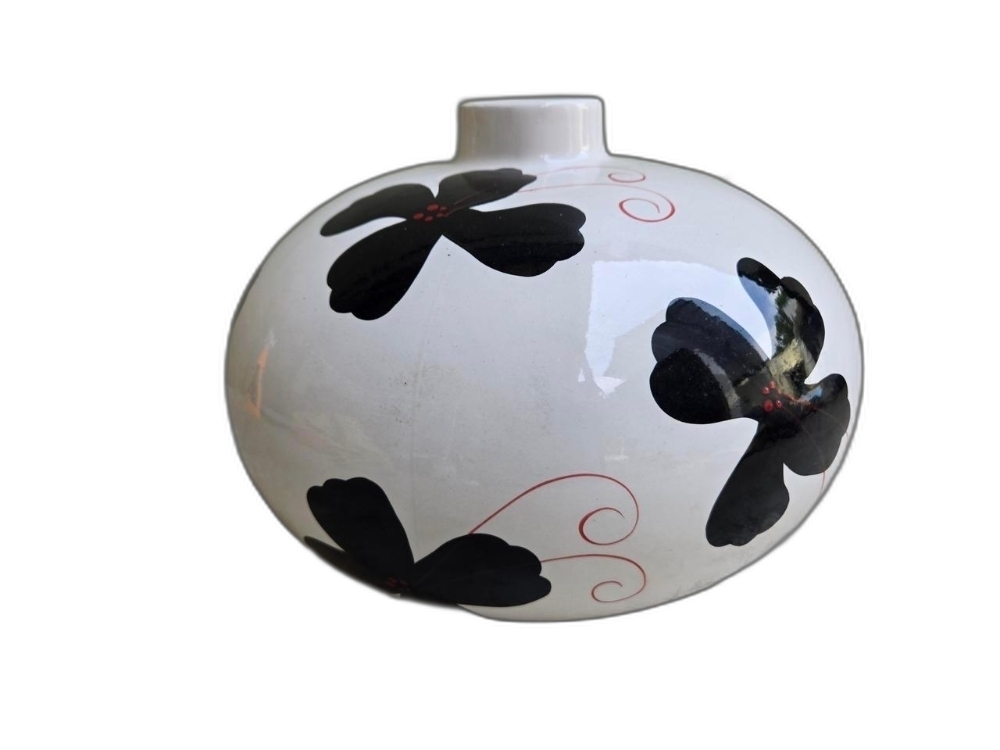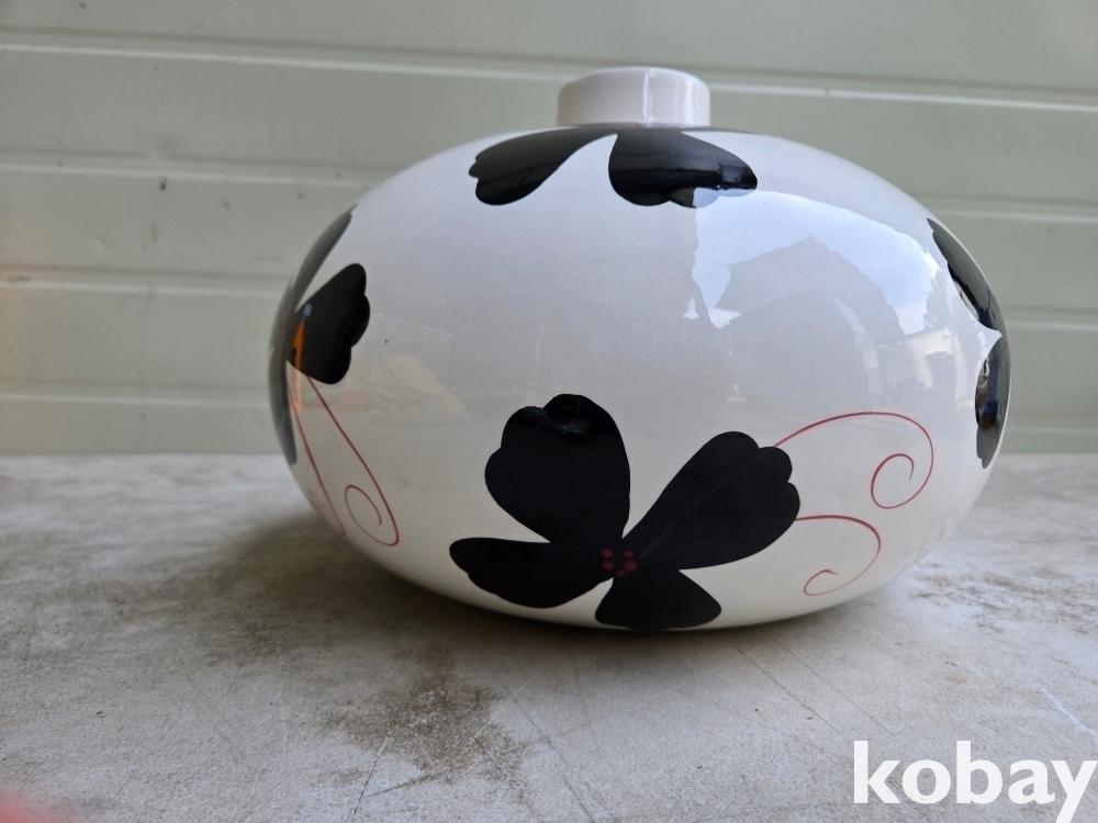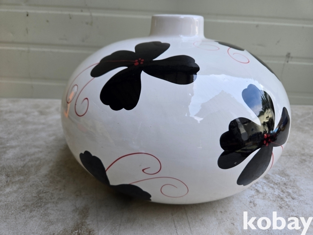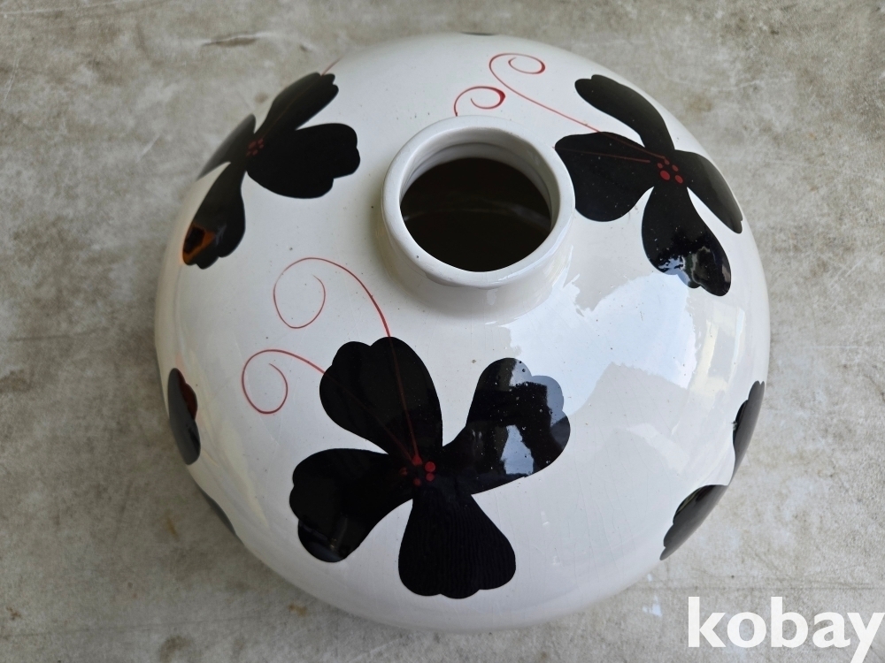 꽃 문양 입이 작고 납작한 도자기 입니다.