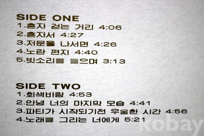 수록 곡 목은 사진을 참조하시기 바랍니다