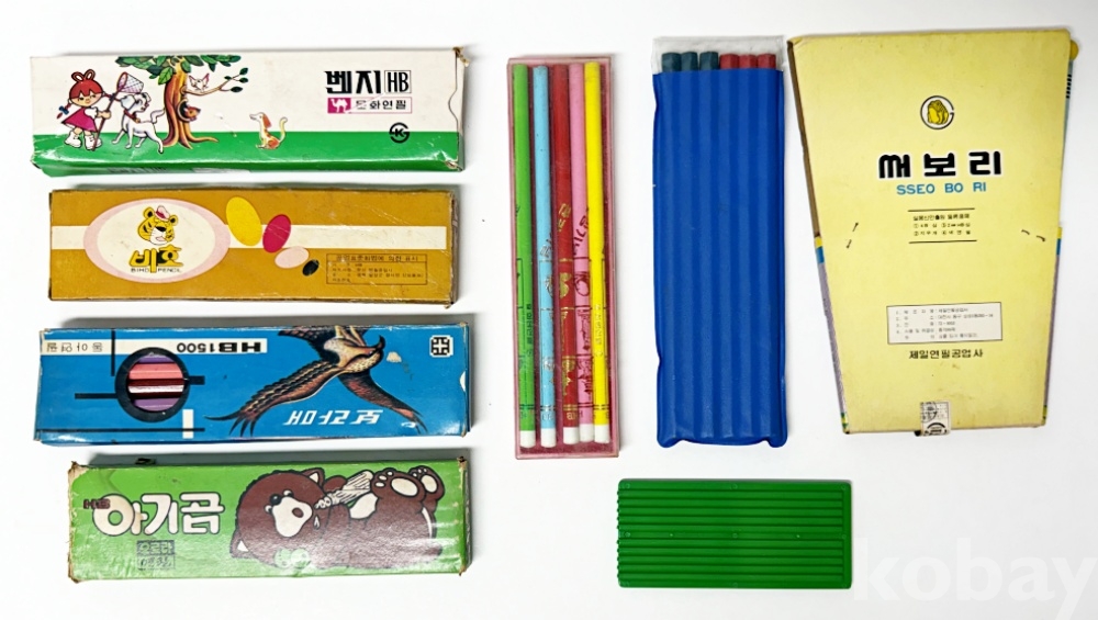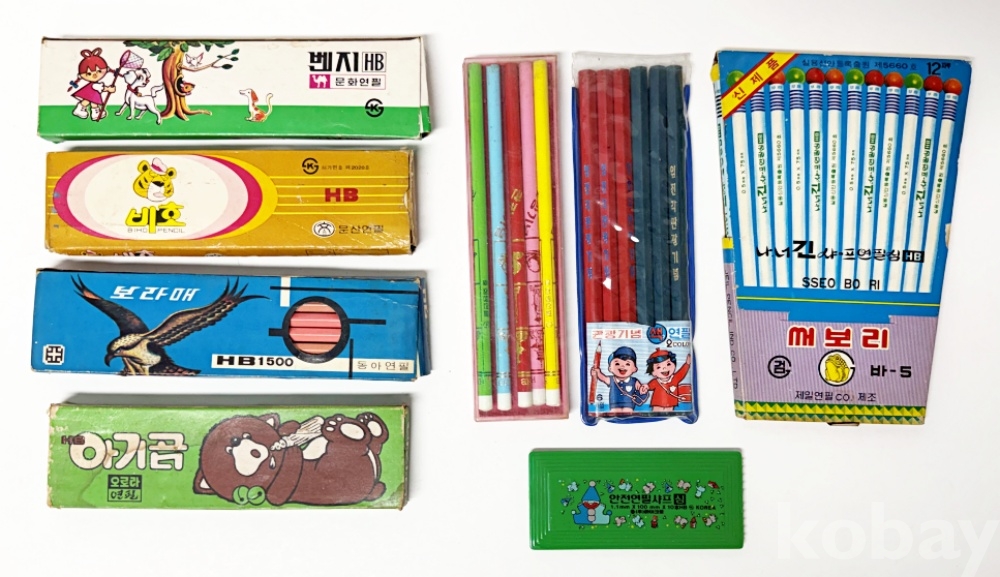 상품설명 | 1. 벤지 HB 연필 / 문화 연필공업주식 회사 / 19.5 x 5 cm 2. 비호 HB 연필 / 문산연필 공업사 / 18.5 x 5 cm 3. 보라매 HB1500 연필 / 동아연필주식회사 / 19.5 x 5.4 cm 4. 아기곰 HB 연필 / 주식회사 오로라 / 17.7 x 5 cm 5. 관광기념 HB 연필 / 화랑연필 / 4.7 x 18.7 cm 6. 임진각관광기념 색연필 / 6 x 18.5 cm 7. 나.너 긴 샤프연필심 HB '써보리' / 제일연필공업사 / 13 x 19 cm 8. 안전연필샤프심 / (주)마이크로 / 11 x 5 cm | ||