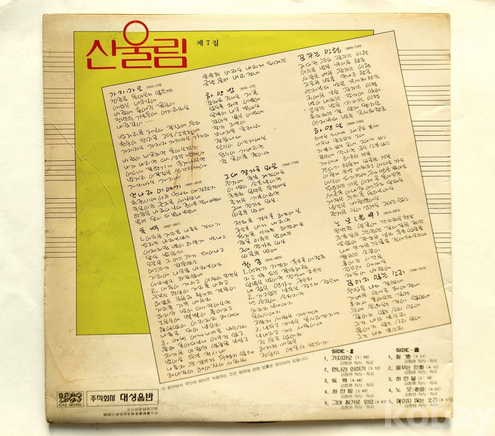 산울림 7 (가지마오/하얀달/청춘) >
