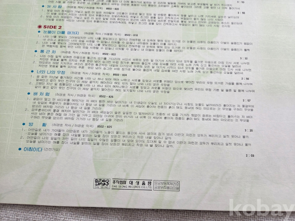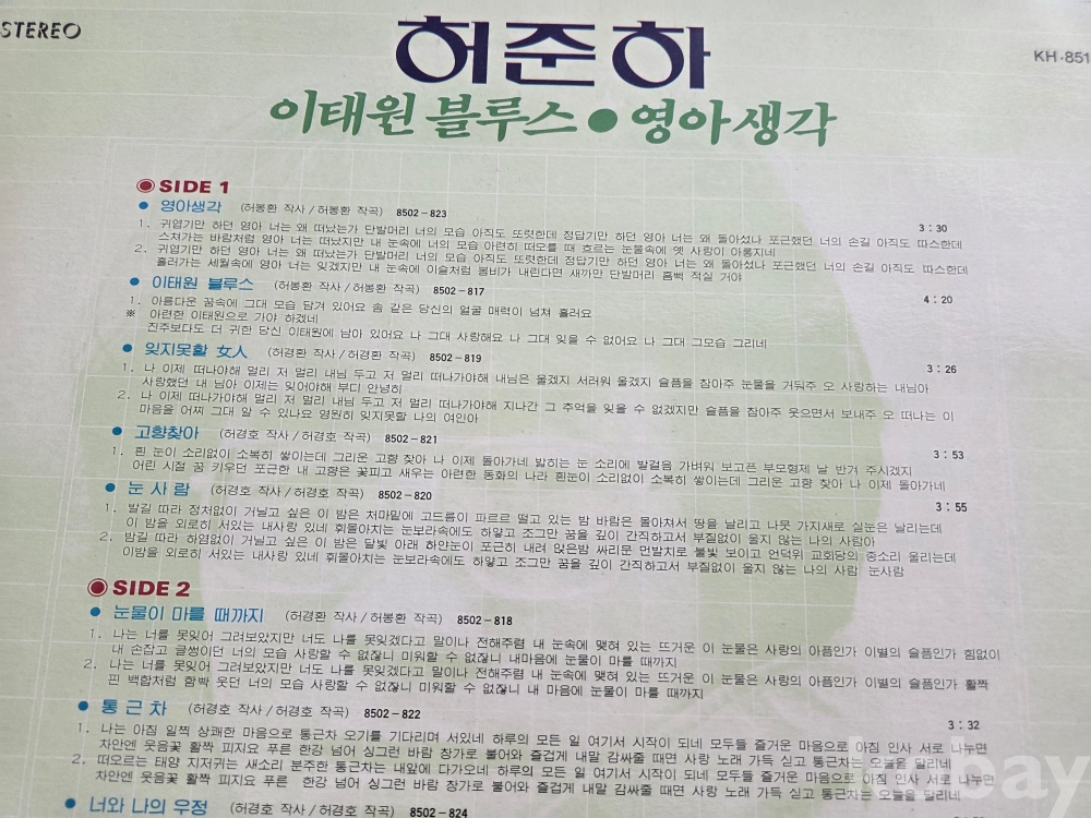 | 자켓상태 | EX : 약간의 마모, 모서리 찢김 존재 | 음반상태 | NM : 개봉했으나 미사용급, 스크래치 없음 | 발매정보 | 초반 | 가사지여부 | 유 |