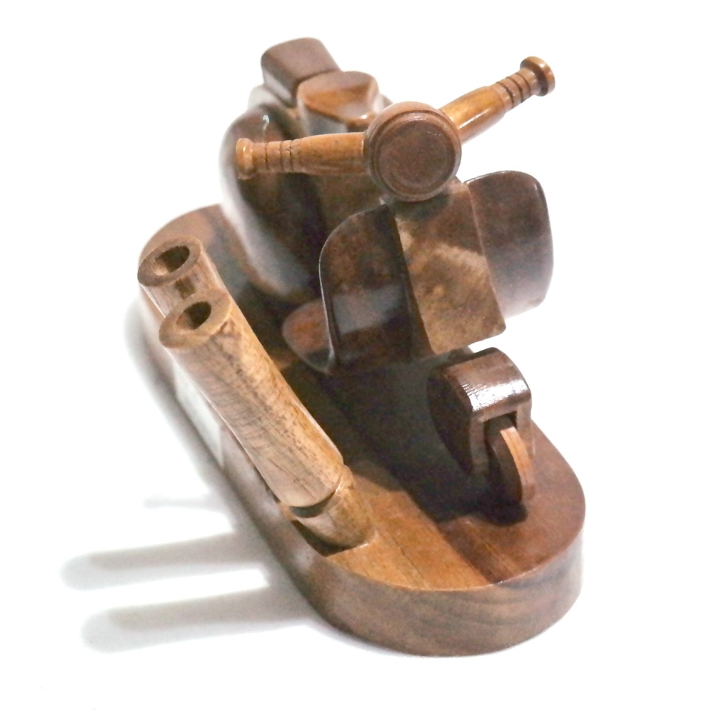 인도네시아에서 나무로 만들어진 스쿠터 모양의 펜꽂이 입니다