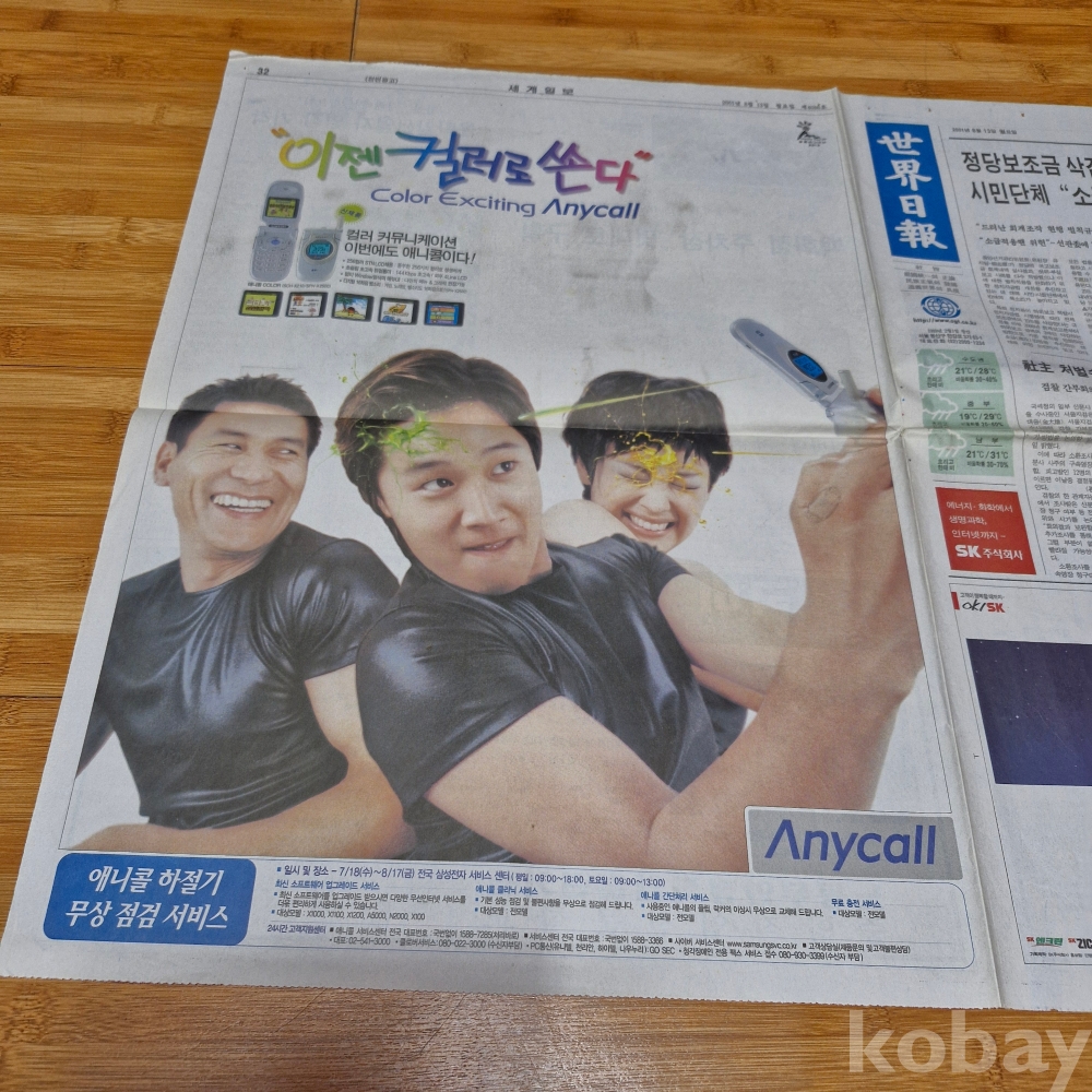 삼성전자 삼성 애니콜ㆍSK주식회사 광고 세계일보 01년8월13일 올려드립니다