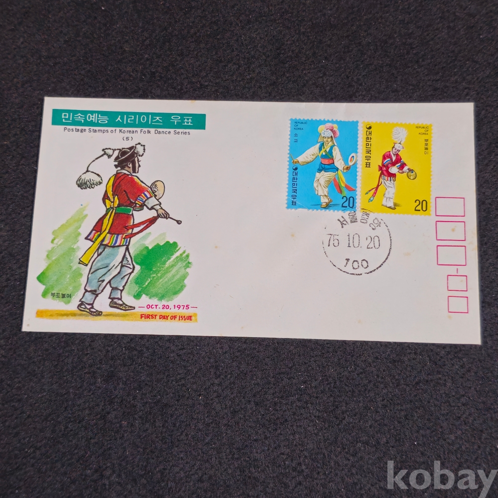 (천원경매) (((우취자료/초일봉피)) 1975년 민속예능시리즈 초일 봉피