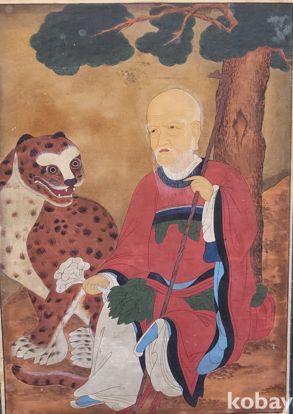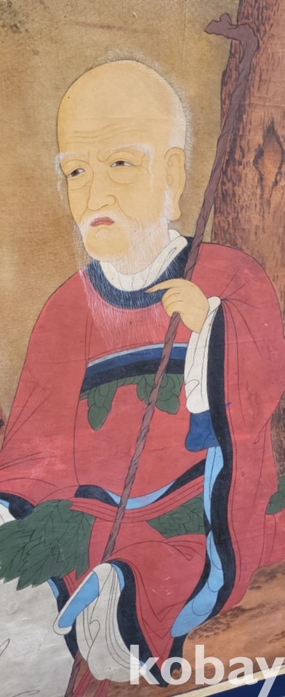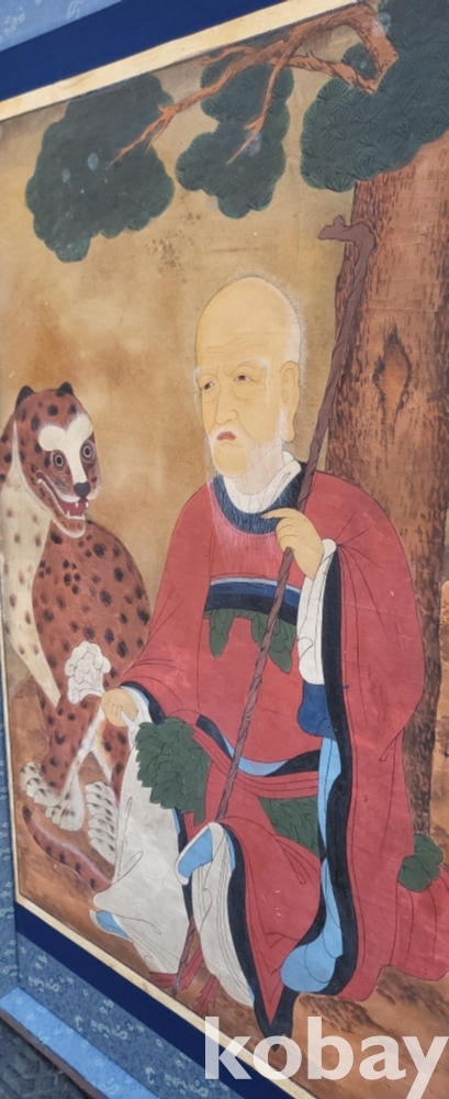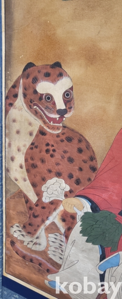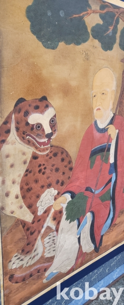 구한말 연대 갖춘 노방에 그려진 산신도(山神圖) 대작 입니다,