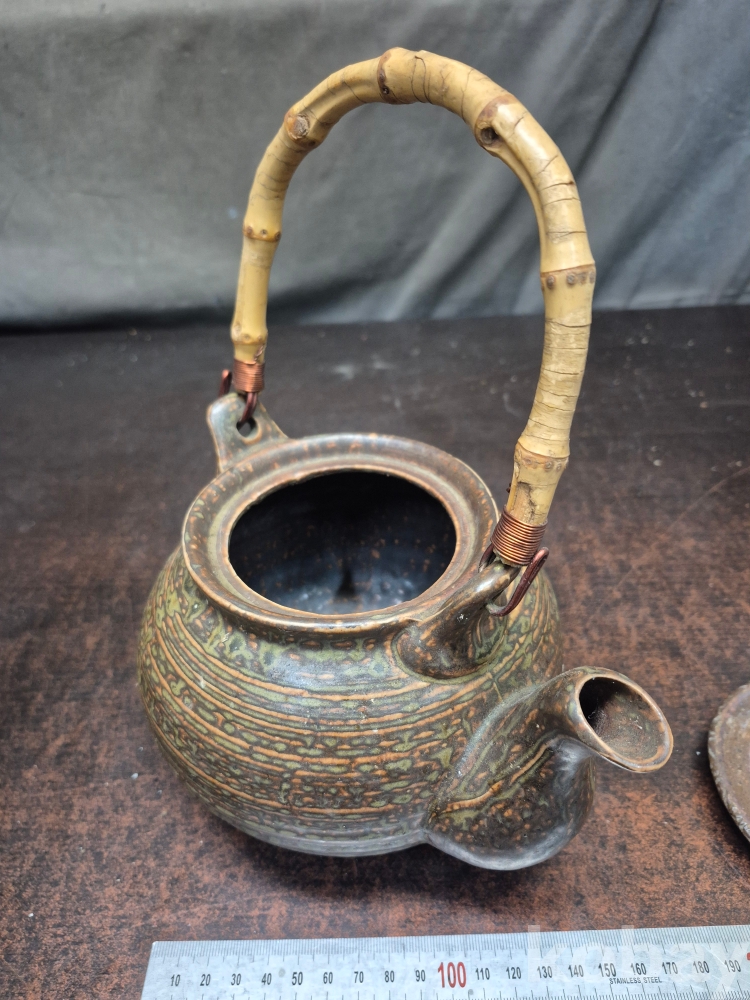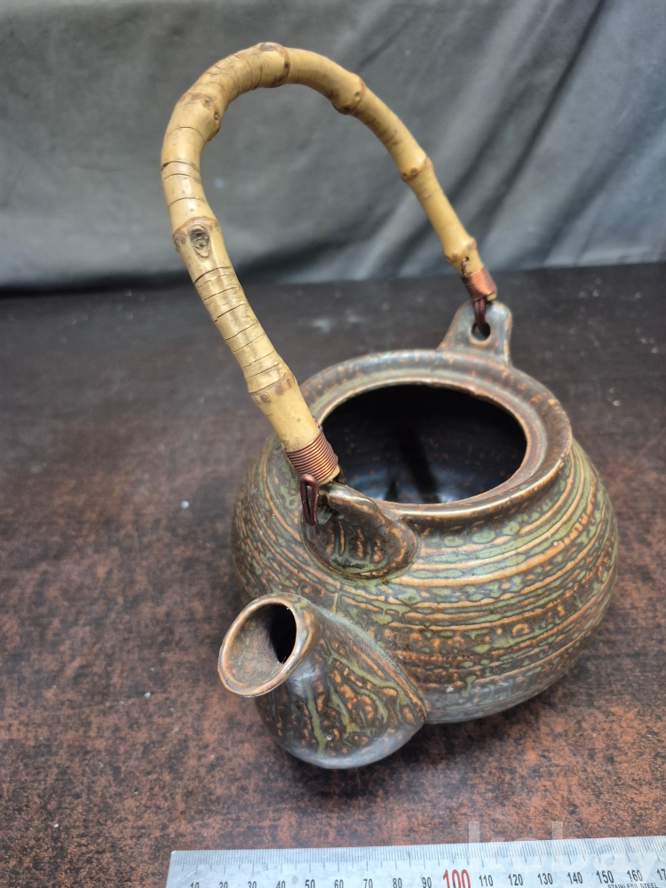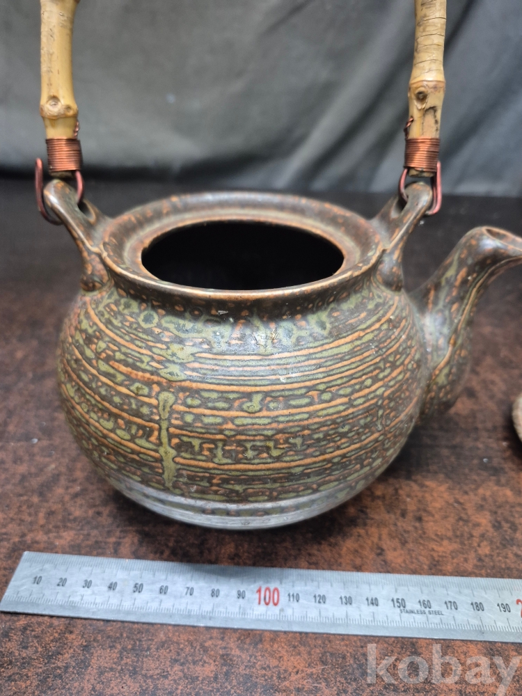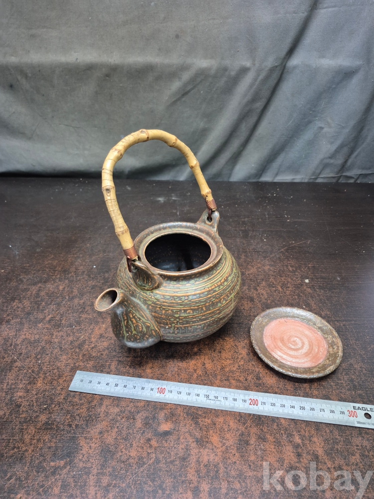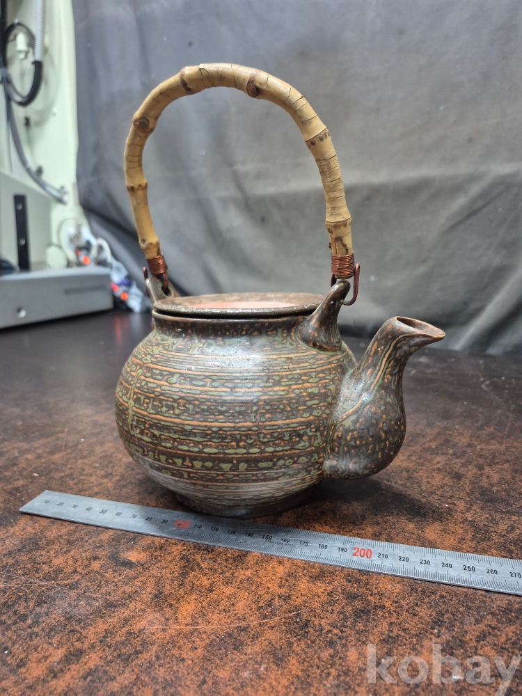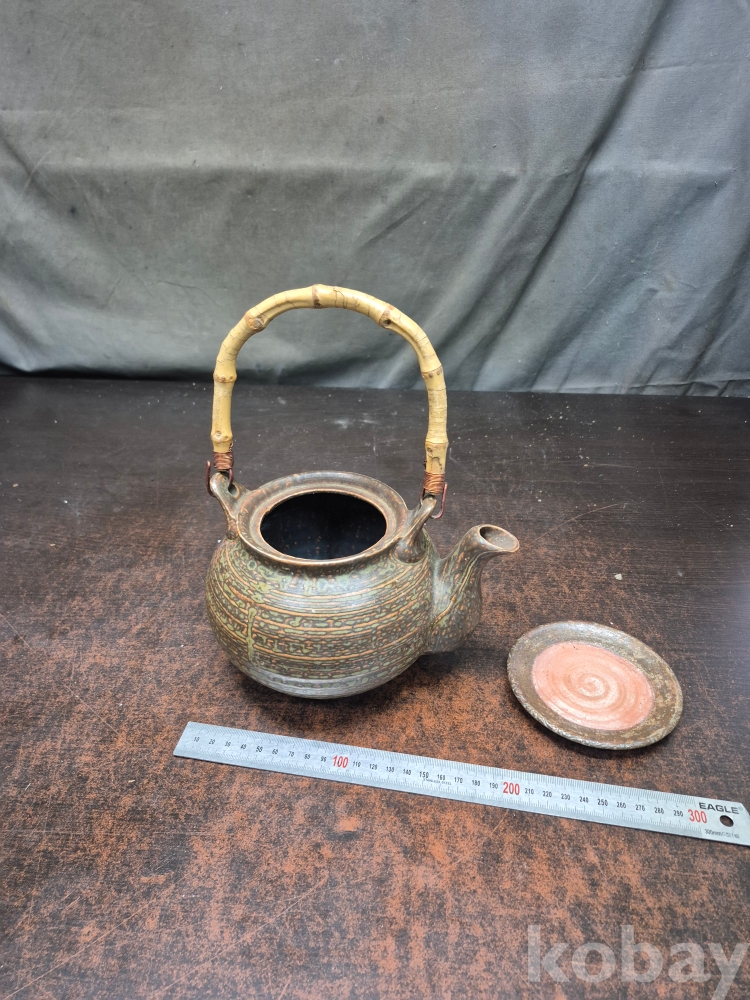 빈티지 도자기 주전자 뚜껑없음 주전자 받침있음 손잡이 대나무 뿌리 20*15*25