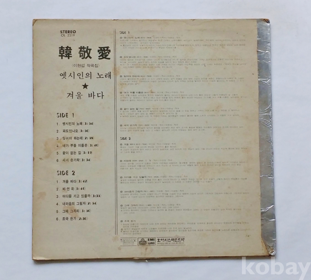 EX : 약간의 마모, 모서리 찢김 존재 음반상태