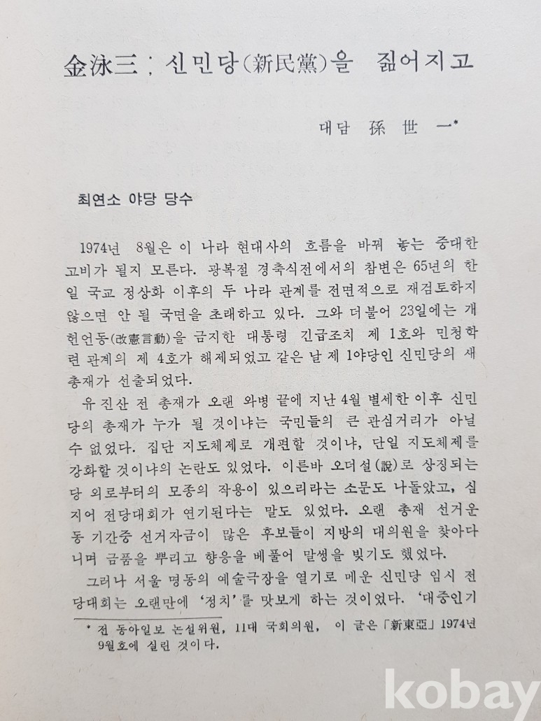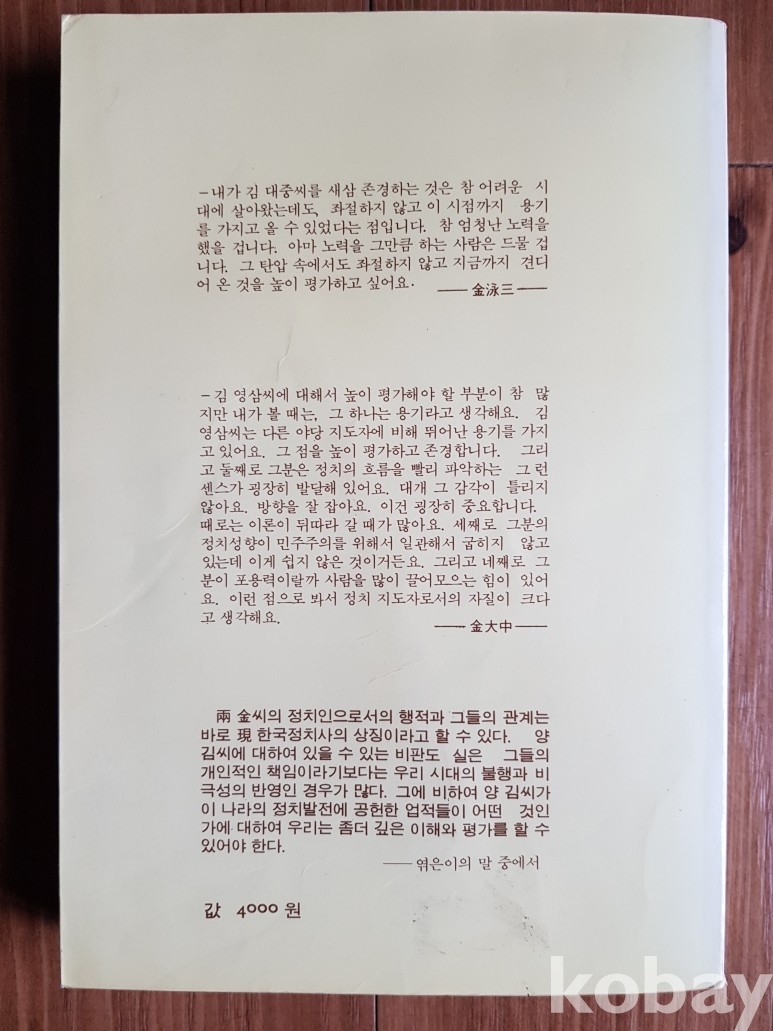 설명: 양 김씨의 정치인으로서의 행적과 그들의 관계는 바로 현 한국정치사의 상징이라고 할 수 있다.