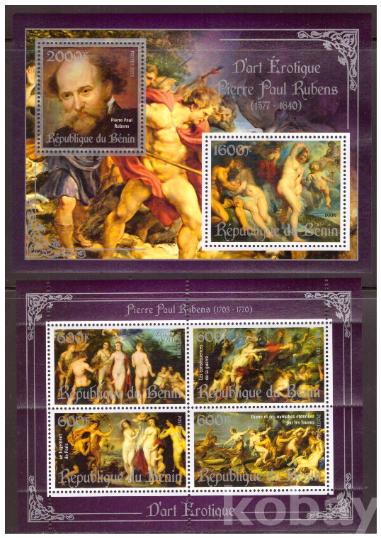 (누드명화) 베냉 2013 페테르 파울 루벤스 누드화 2 s/s(silver) MNH
