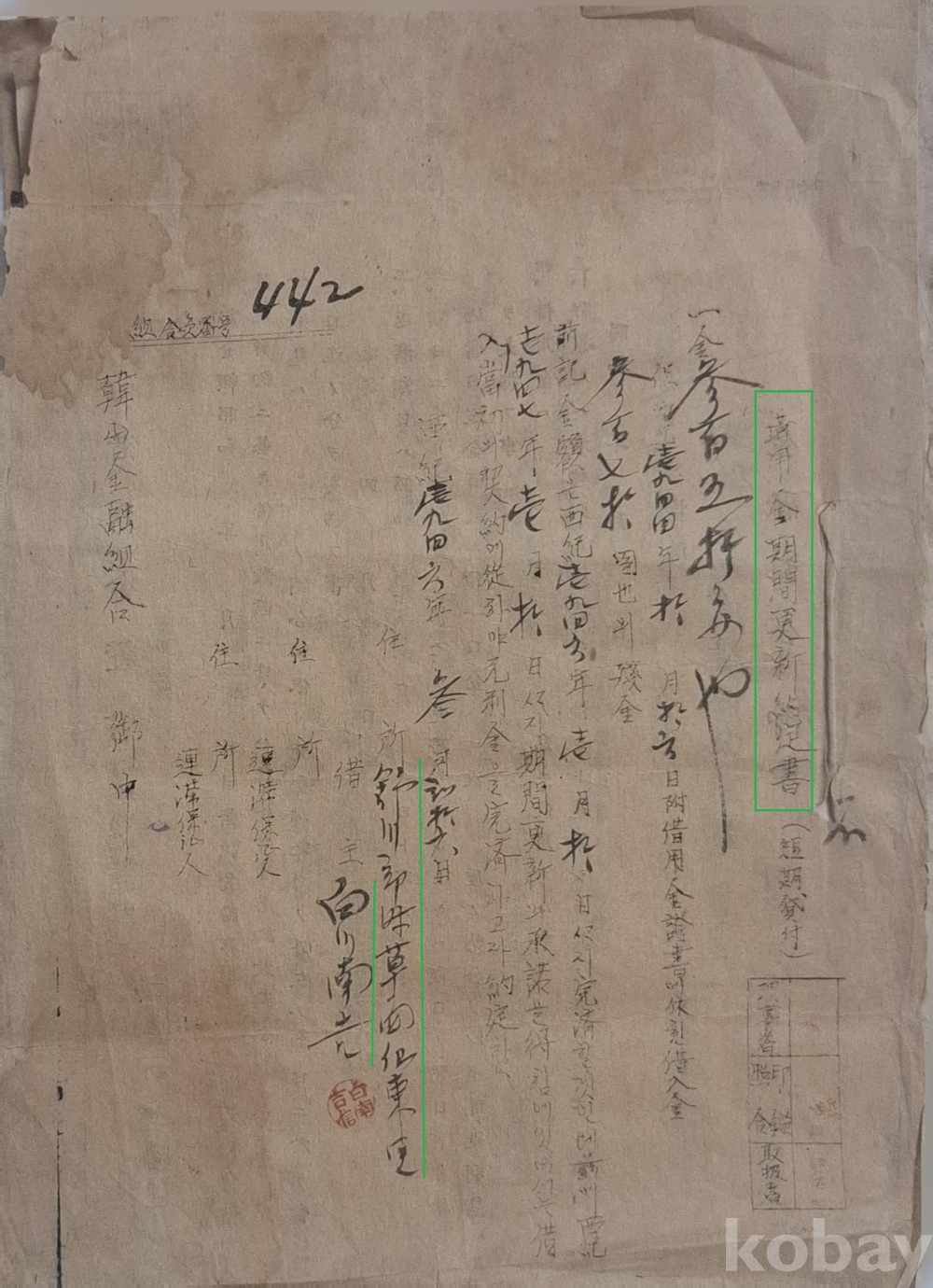 ⓹ 서기1946년 3월 25일 차용금기간갱신약정서(借用金期間更新約定書)