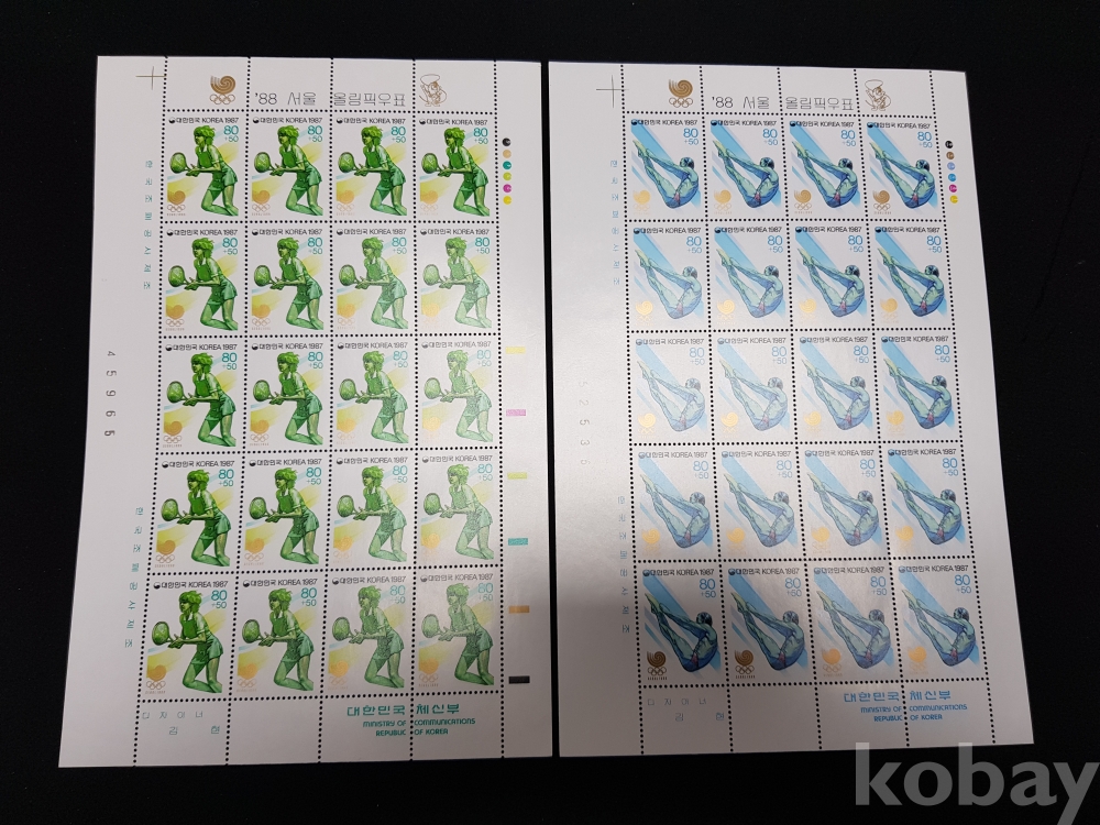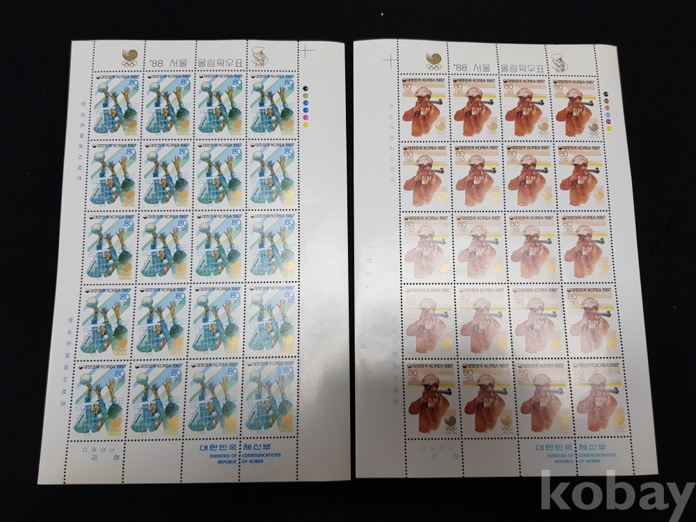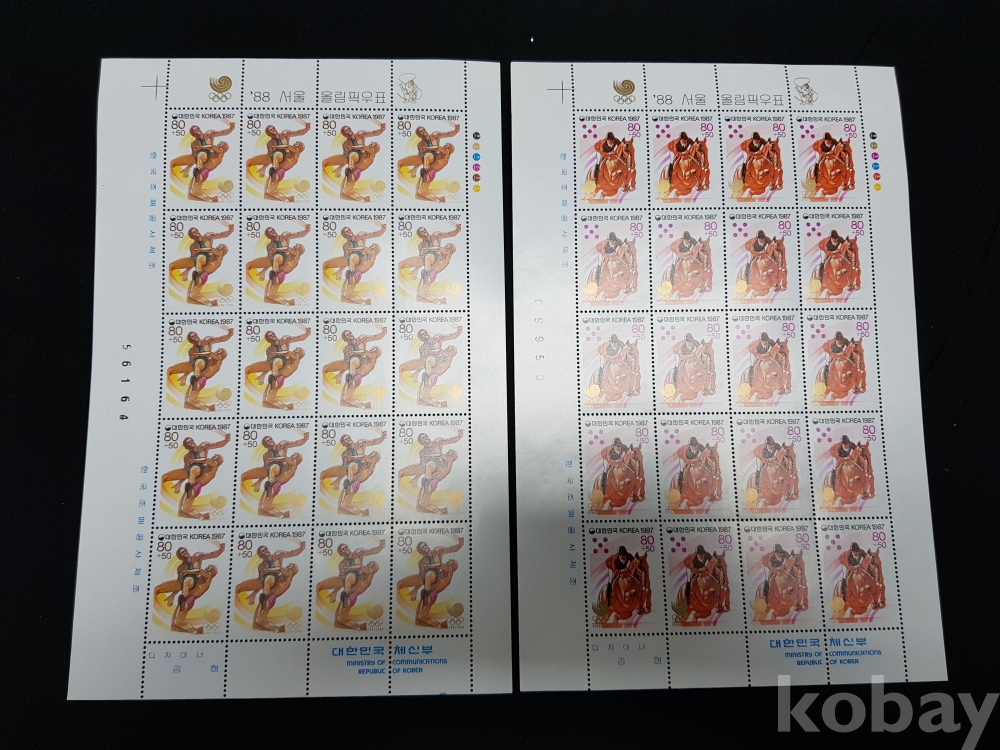- 미사용 1986년 88서울올림픽 - 제 7,8,9집 전지 10종 모음