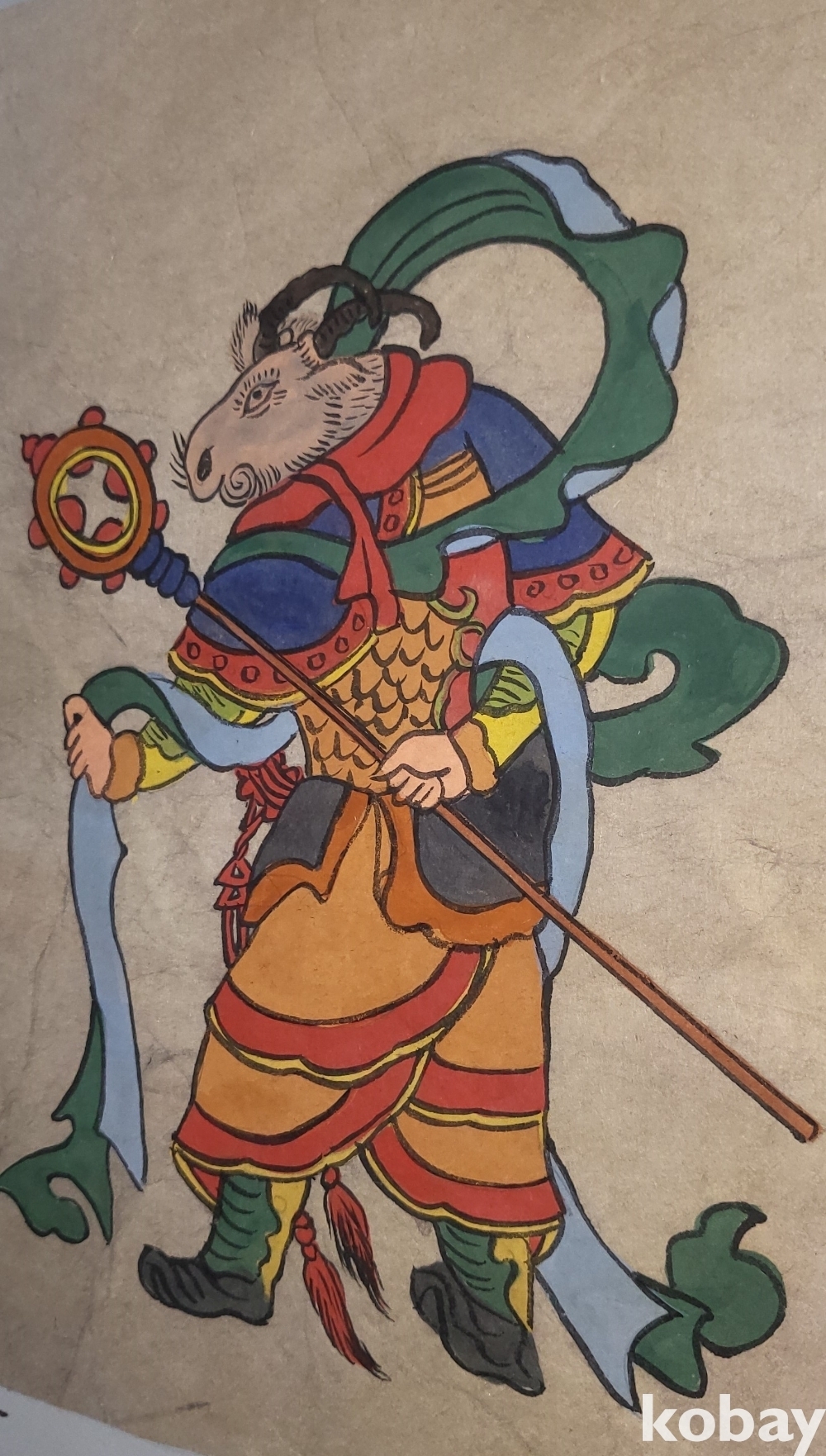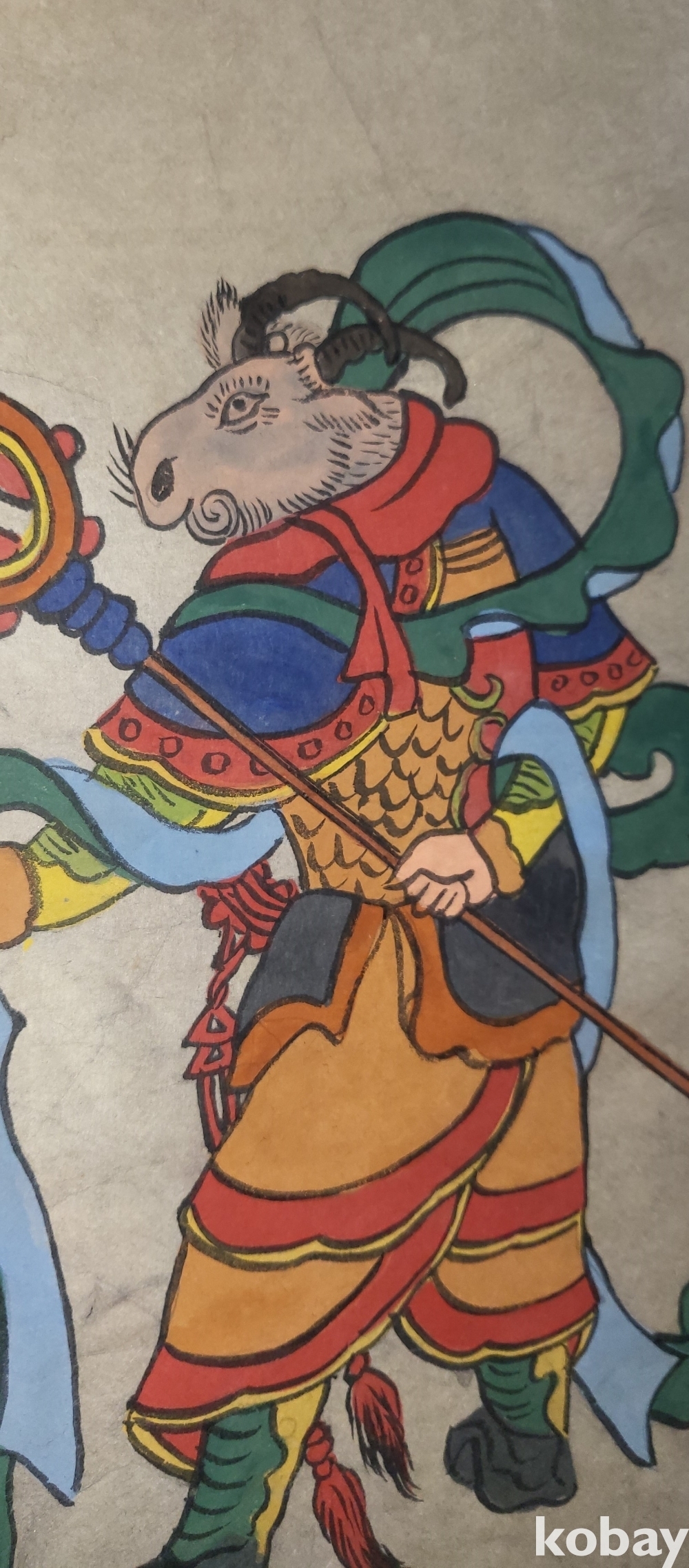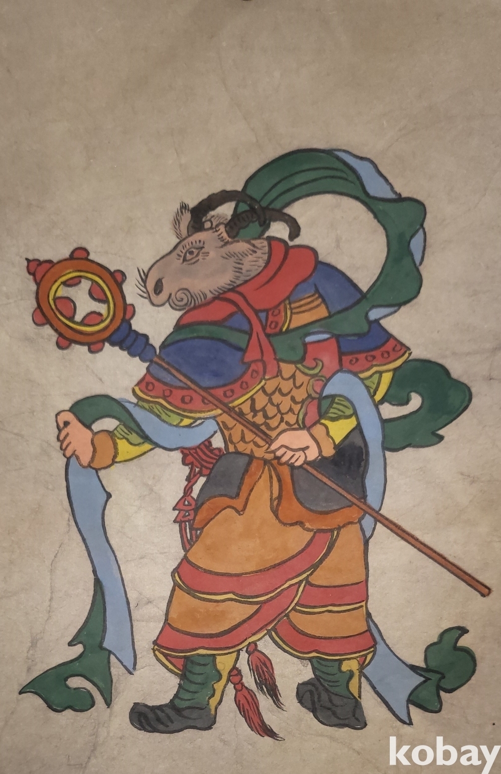 구한말 연대 갖춘 장지 바닥에 당채로 그려진 동물 형상 그림입니다,