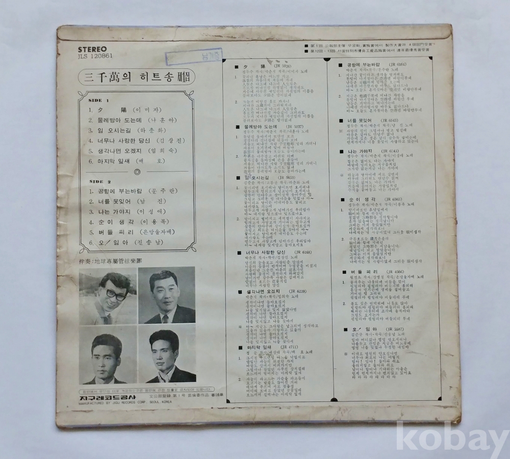 | 자켓상태 | EX : 약간의 마모, 모서리 찢김 존재 | 음반상태 | EX : 재생에 영향 없는 가벼운 기스 존재 | 발매정보 | 알수없음 | 가사지여부 | 무 |