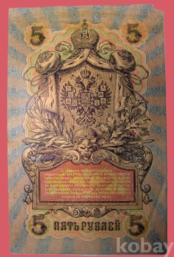2. 뒷면 (Reverse) 법령 발췌문 (주요 3개 조항) 뒷면에는 화폐의 신뢰도를 보증하는 법령이 기록되어 있습니다. 제1조 원문: Разм?нъ государственныхъ кредитныхъ билетовъ на золотую монету обезпечивается всемъ достоянiемъ Государства. 발음: 라즈멘 고수다르스트벤니흐 크레디트니흐 빌례토프 나 졸로투유 모네투 오베스페치바예트샤 프셈 도스토야니옘 고수다르스트바 번역: 국영 신용권의 금화 교환은 국가의 모든 자산에 의해 보증된다. 제2조 원문: Государственные кредитные билеты им?ютъ хожденiе во всей Имперiи наравн? съ золотою монетою. 발음: 고수다르스트벤니예 크레디트니예 빌례티 이몌윳 호즈뎨니예 보 프세이 임페리이 나라브녜 스 졸로토유 모네토유 번역: 국영 신용권은 제국 전역에서 금화와 동등하게 통용된다. 제3조 원문: За подд?лку кредитныхъ билетовъ виновные подвергаются лишенiю вс?хъ правъ состоянiя и ссылк? въ каторжную работу. 발음: 자 포뎰쿠 크레디트니흐 빌례토프 비노브니예 포드베르가윳샤 리셰니유 프세흐 프라프 소스토야니야 이 실케 프 카토르즈누유 라보투 번역: 신용권을 위조한 자는 모든 신분상의 권리를 박탈당하고 강제 노동 형(카토르가)에 처한다.