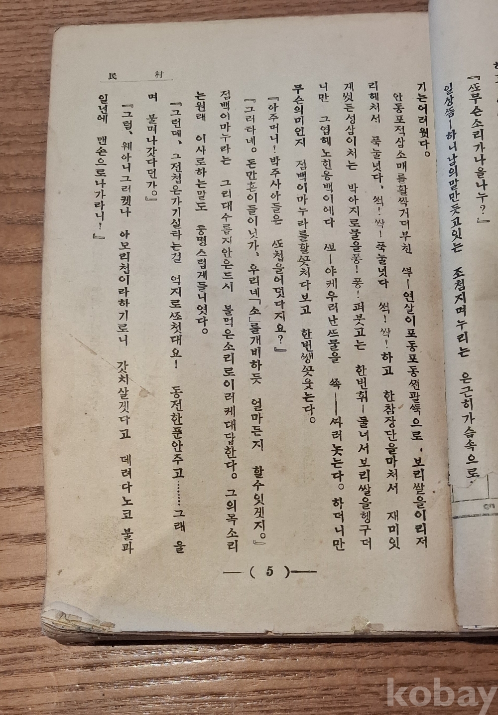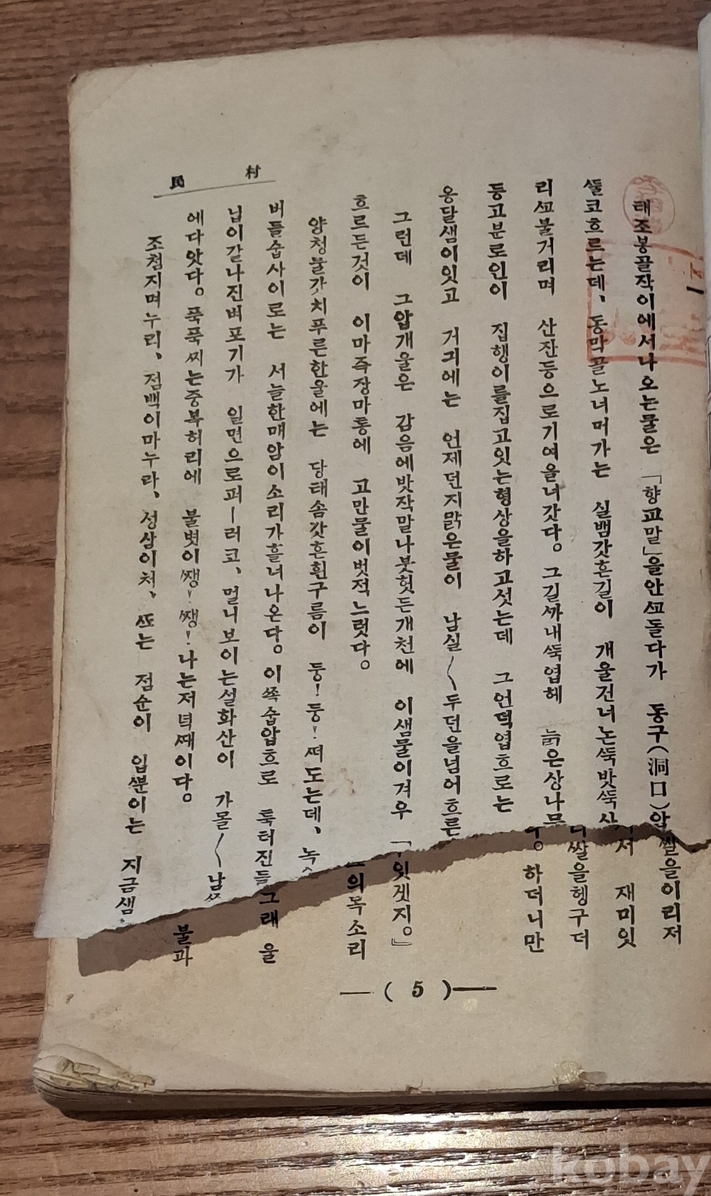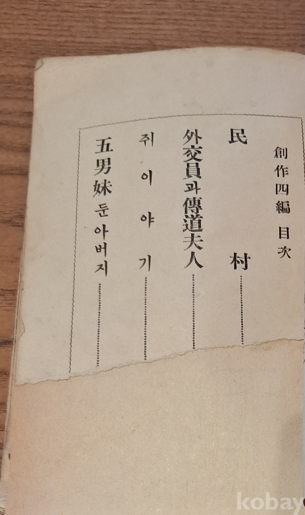 소설 첫장 하단 부분 파손