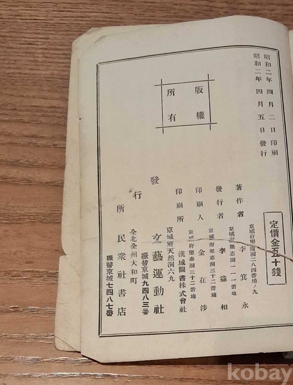1927년 초판 刊