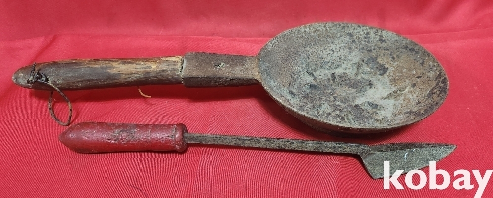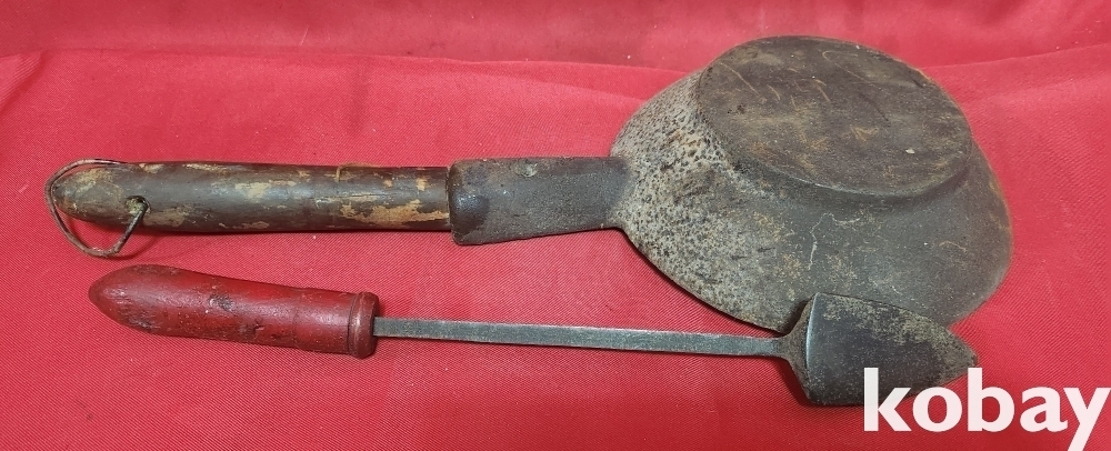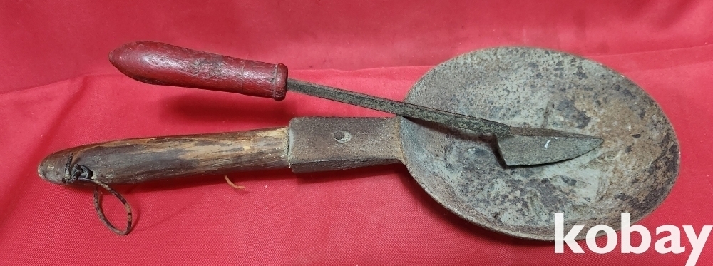 민속품 으로 무쇠로 만든 큰숯불 다리미와 인두 일괄입니다,