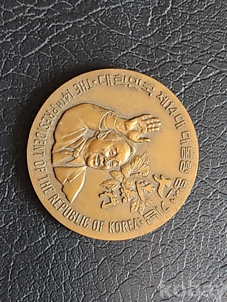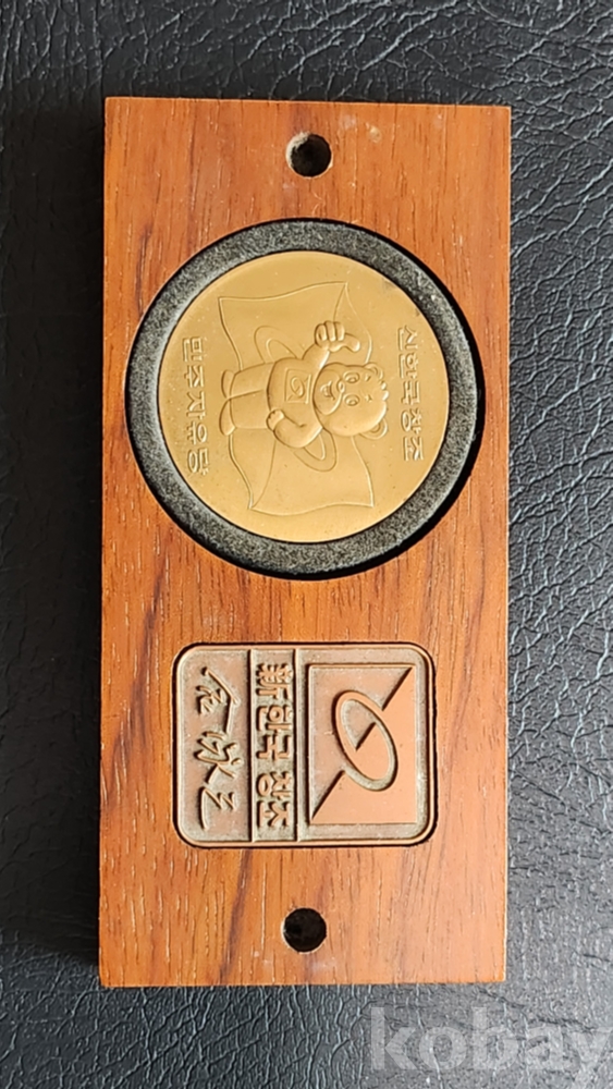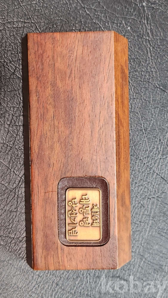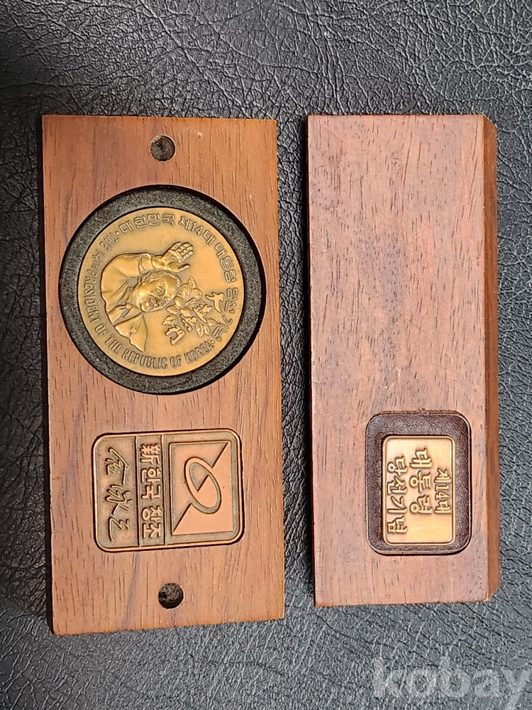 제14대 김영삼 대통령 당선기념 수집품 원목에 황동조합 구성이며