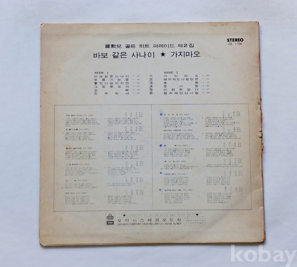 EX : 재생에 영향 없는 가벼운 기스 존재 발매정보 알수없음 가사지여부