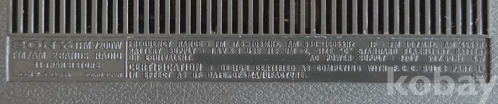 품 명 | 동작하고 상태 좋은 11TR 소니 AM/FM 2밴드 라디오 ***TFM-7200W***(한국 주파수, 희귀 모델) |