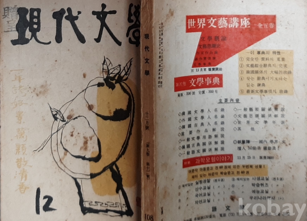 (별고)현대문학1963년12월호 NO108 표지 김기창